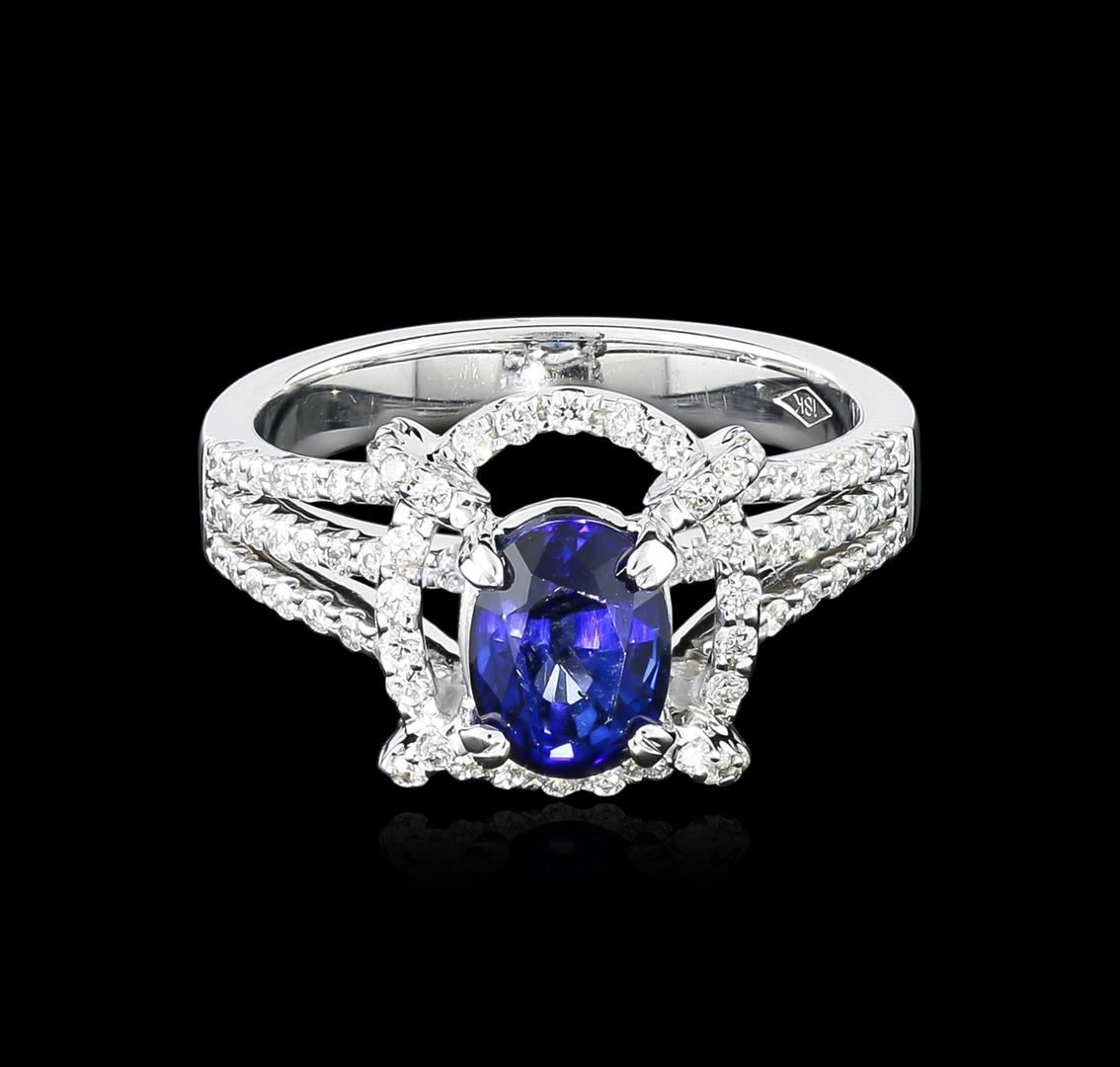One ring featuring: 18KT white gold weighing 5.50 grams containing one sapphire center stone with a total weight of 1.55ct and diamonds with a total weight of 0.56ct.