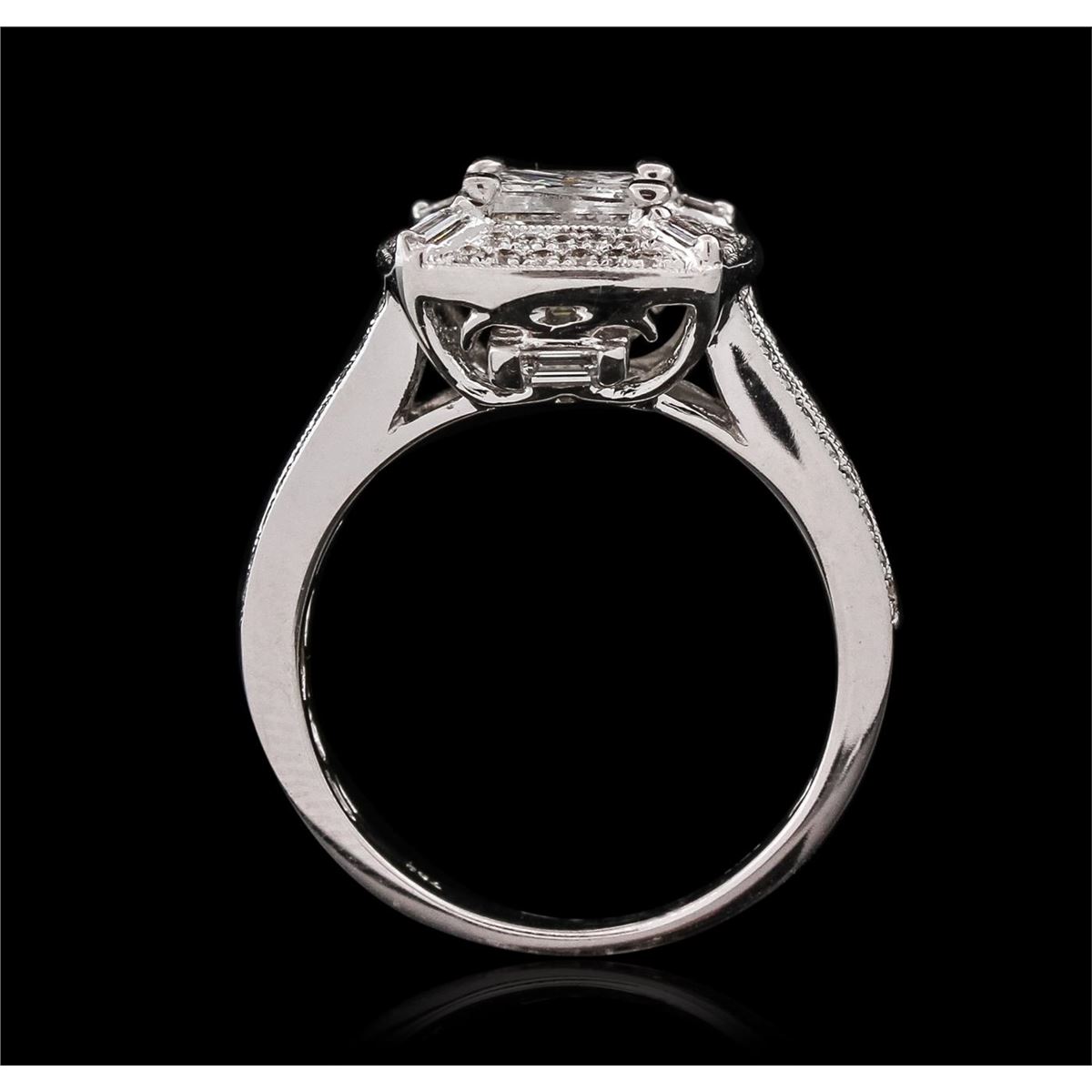 One electronically tested 18KT white gold ladies combination cast & assembled diamond engagement ring with a bright polish finish. Identified with markings of "18K". Condition is new. Containing: One prong set princess cut diamond, measuring 5.30 x 5.20 x 3.90mm (depth est.) approximate weight of 0.88ct. Clarity: I-2. Color: I, Cut is Good. Eighty-Five prong set round brilliant cut diamonds, measuring 1.30 - 1.30 x 0.78mm (depth est.) approximate total weight of 85 Stones = 0.68ct. Clarity: SI-1 to SI-2. Color: H - I, Cut is Good. All diamonds are graded in the mounting, unless otherwise stated. Total Weight of Diamonds 1.56ct. Total Weight of Engagement Ring 6.40 grams. GGL Appraised at $8,665.00.