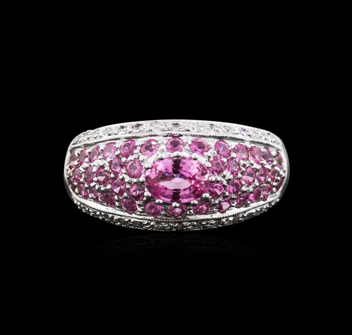 One ring featuring: 18KT white gold weighing 3.00 grams containing 41 pink sapphires with a total weight of 1.88ct and 30 round diamonds with a total weight of 0.19ct.
