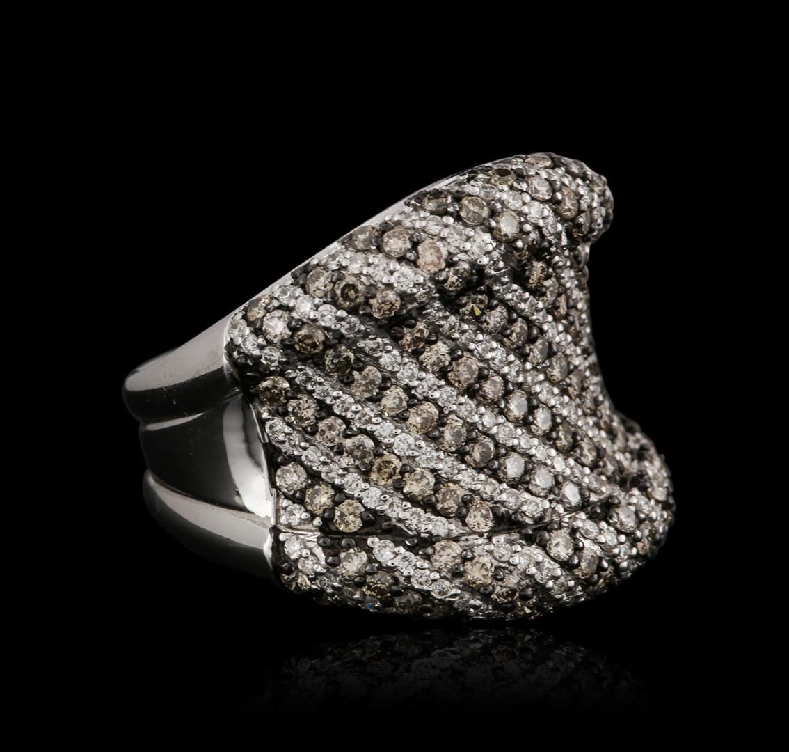 One electronically tested 18KT white gold ladies cast diamond ring with a bark finish. Identified with markings of "18K". Condition is new. Containing: One Hundred Fifty prong set round brilliant cut diamonds, measuring 1.10 - 1.10 x 0.66mm (depth est.) approximate total weight of 150 Stones = 0.72ct. Clarity: SI-1 to I-1. Color: I - J, Cut is Good. One Hundred Twenty prong set round brilliant cut diamonds, measuring 1.50 - 1.30 x 0.84mm (depth est.) approximate total weight of 120 Stones = 1.20ct. Clarity: SI-2 to I-1. All diamonds are graded in the mounting, unless otherwise stated. Total Weight of Diamonds 1.92ct. Total Weight of Ring 13.20 grams. GGL Appraised at $6,560.00.
