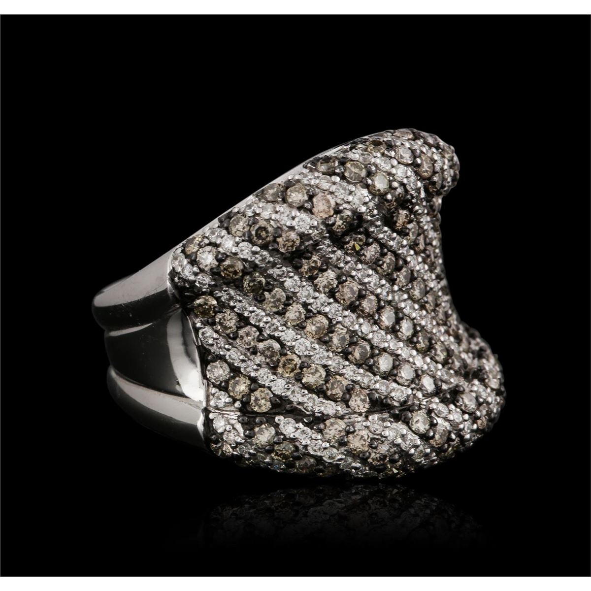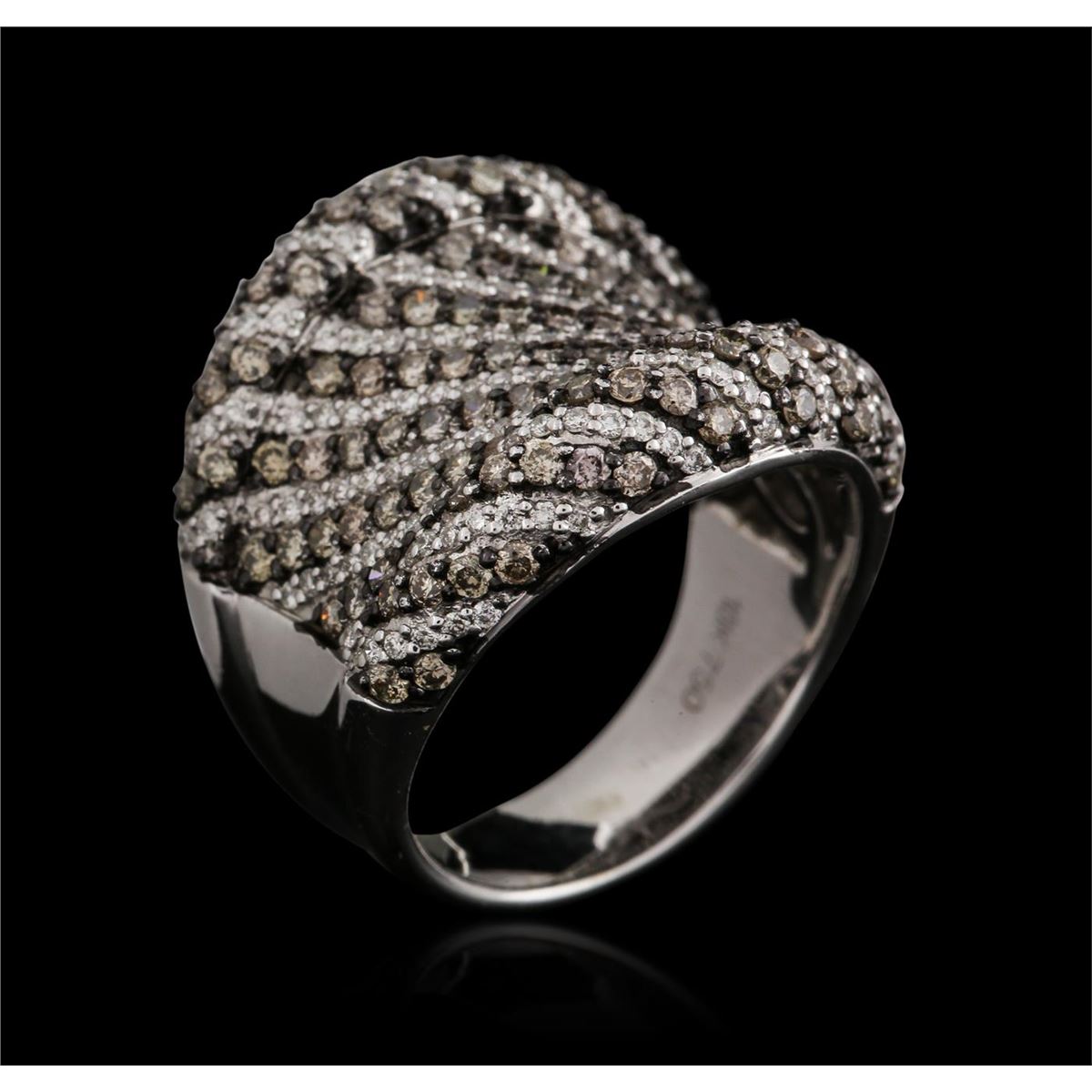 One electronically tested 18KT white gold ladies cast diamond ring with a bark finish. Identified with markings of "18K". Condition is new. Containing: One Hundred Fifty prong set round brilliant cut diamonds, measuring 1.10 - 1.10 x 0.66mm (depth est.) approximate total weight of 150 Stones = 0.72ct. Clarity: SI-1 to I-1. Color: I - J, Cut is Good. One Hundred Twenty prong set round brilliant cut diamonds, measuring 1.50 - 1.30 x 0.84mm (depth est.) approximate total weight of 120 Stones = 1.20ct. Clarity: SI-2 to I-1. All diamonds are graded in the mounting, unless otherwise stated. Total Weight of Diamonds 1.92ct. Total Weight of Ring 13.20 grams. GGL Appraised at $6,560.00.