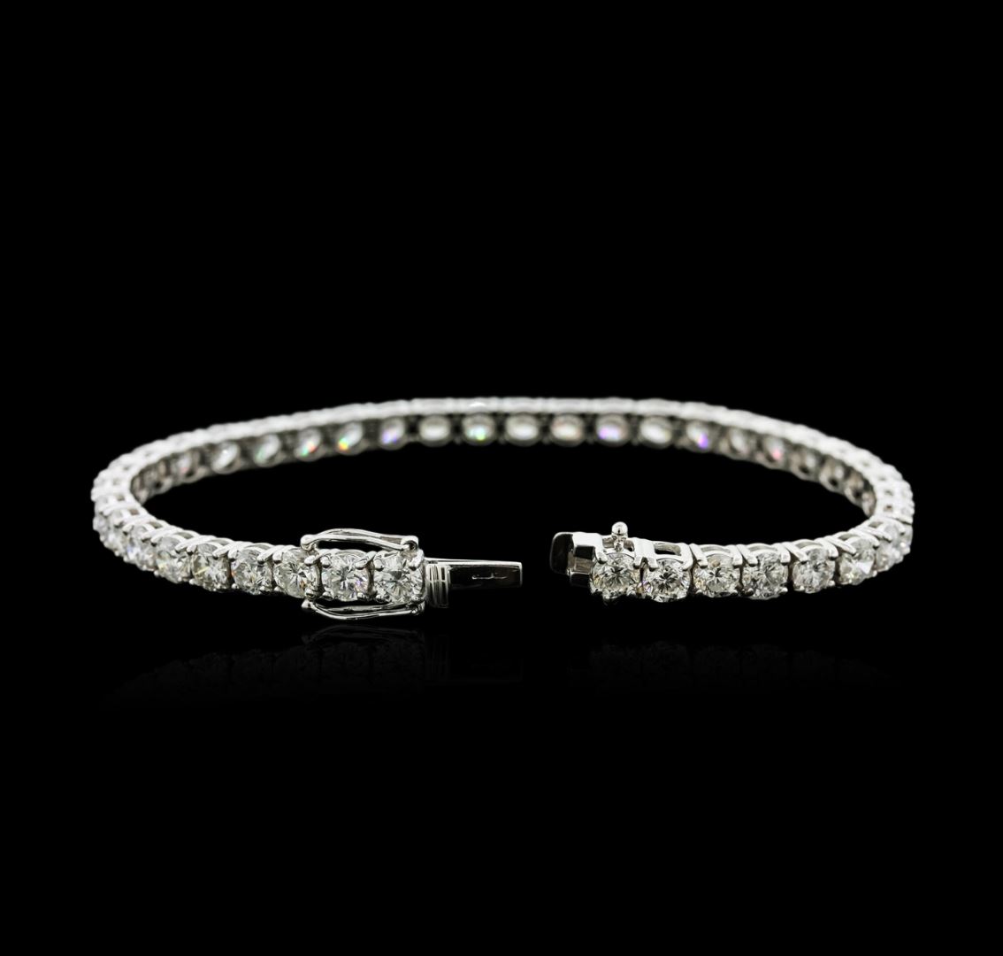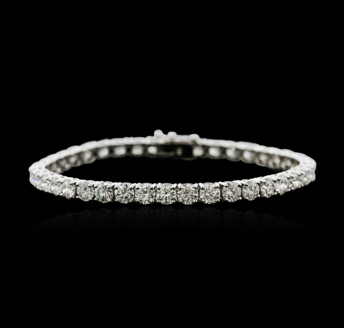 One electronically tested 18KT white gold ladies cast diamond tennis bracelet with a hidden box clasp with safety closer with a bright polish finish. Measurements: 7" in length Identified with markings of "750". Condition is new. Containing: Forty prong set round brilliant cut diamonds, measuring 4.30 - 4.30 x 2.58mm (depth est.) approximate total weight of 40 Stones = 11.64ct. Clarity: SI-1 to I-2. Color: H - J, Cut is Good. All diamonds are graded in the mounting, unless otherwise stated. Total Weight of Diamonds 11.64ct. Total Weight of Tennis Bracelet 15.90 grams. GGL Appraised at $26,365.00.