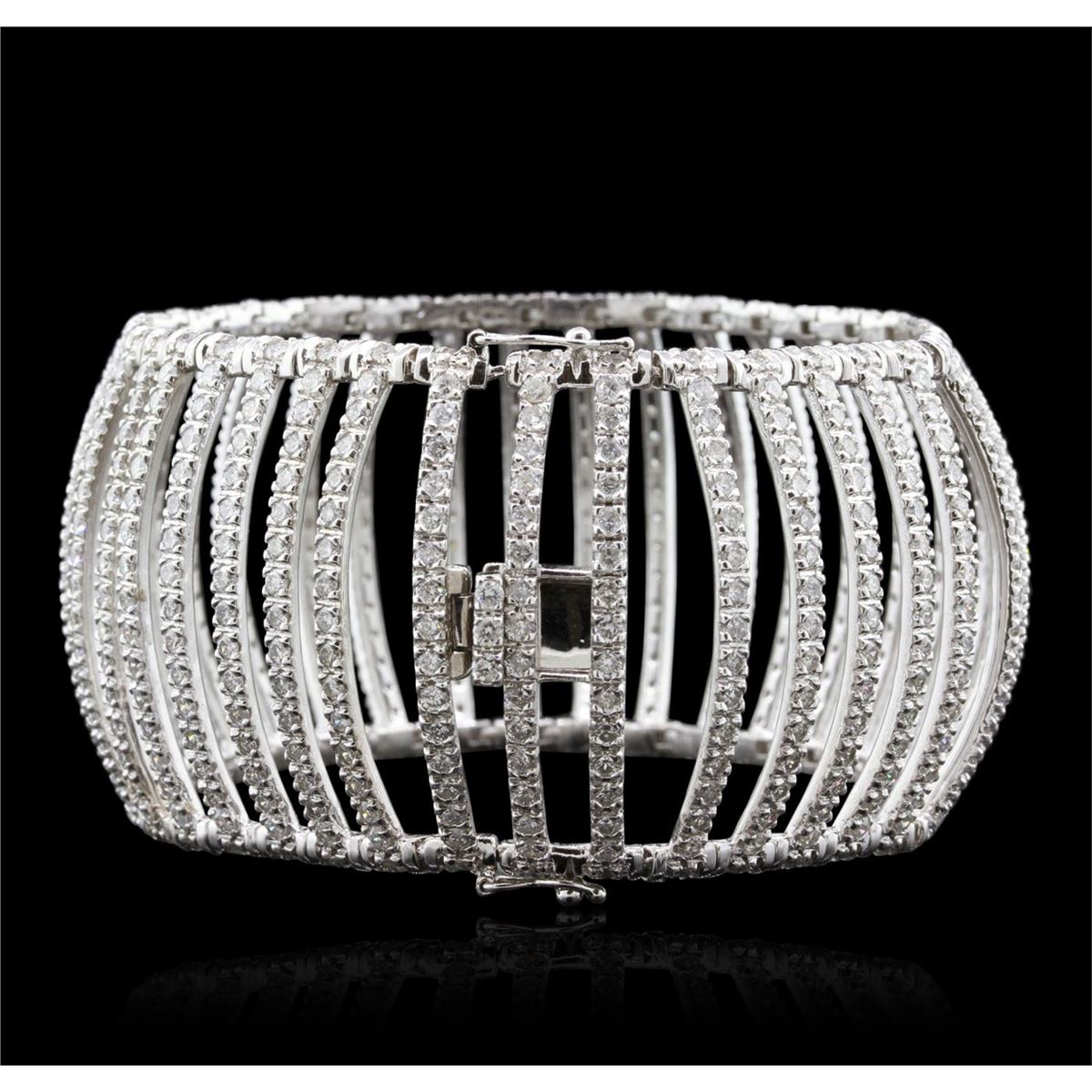 One electronically tested 18KT white gold Ladies combination cast & die struck fashion bracelet with a hidden box clasp with a bright polish finish. Identified with markings of "18K". Condition is new. Containing: Six Hundred Fifteen bead set round brilliant cut diamonds, measuring 1.70 - 1.70 x 1.02mm (depth est.) approximate total weight of 615 Stones = 12.60ct. Clarity of SI-2 to I-1, Color of H - I, Cut is Good. Total Weight of Diamonds 12.60ct. Total Weight of Bracelet 64.20gm. GGL Appraised at $54,275.00.