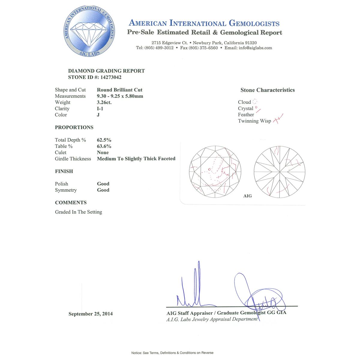 Regarding Appraised Jewelry, Watches and Loose Stones –
