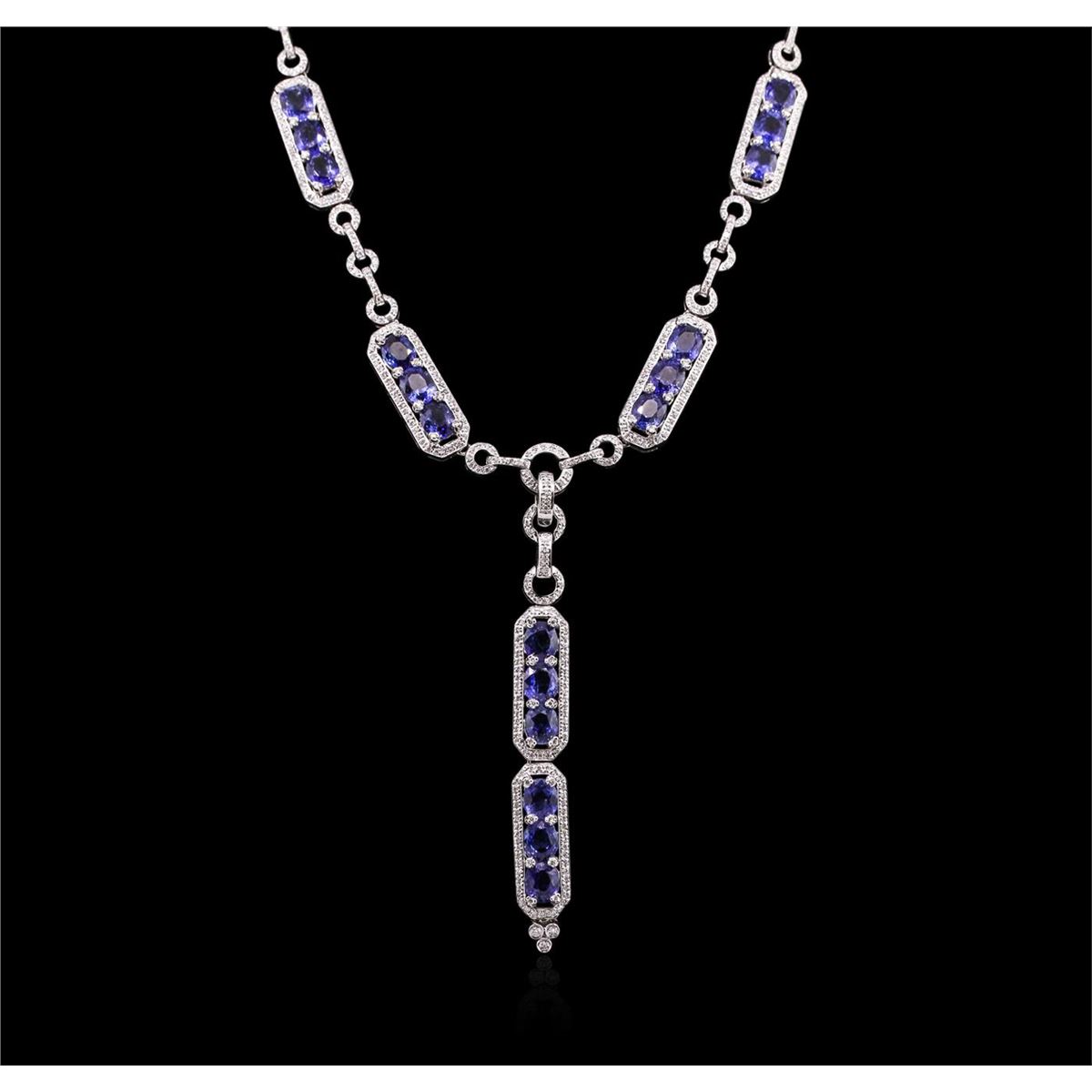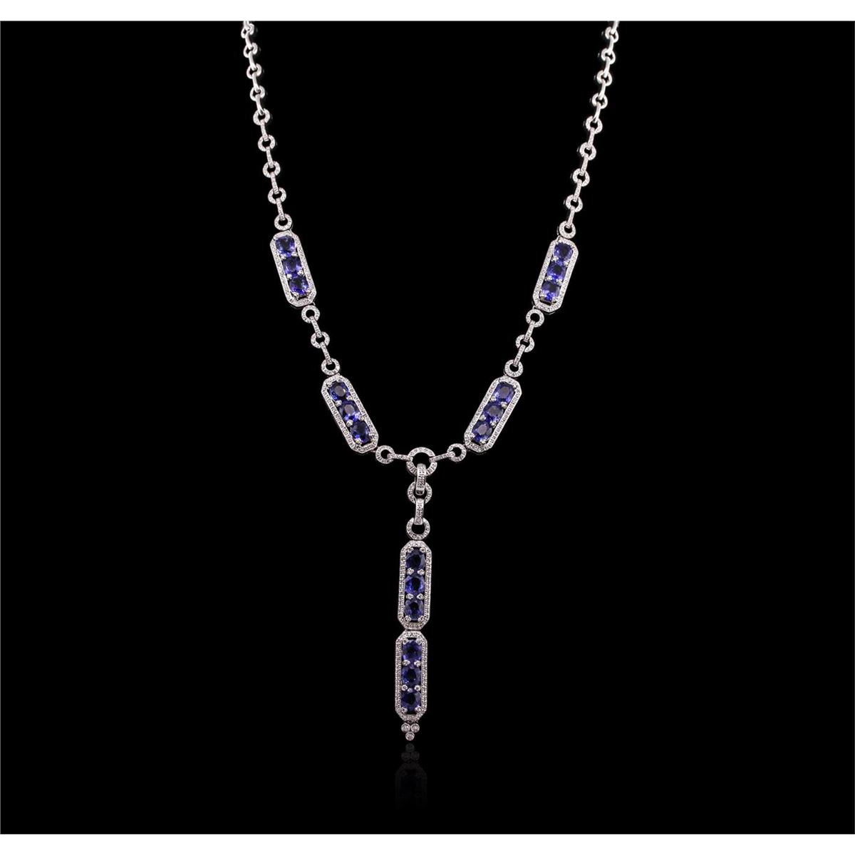 One necklace featuring: 18KT white gold weighing 37.60 grams containing 18 sapphires with a total weight of 14.50ct and 567 round diamonds with a total weight of 1.75ct.