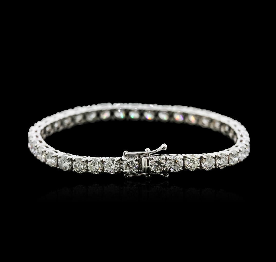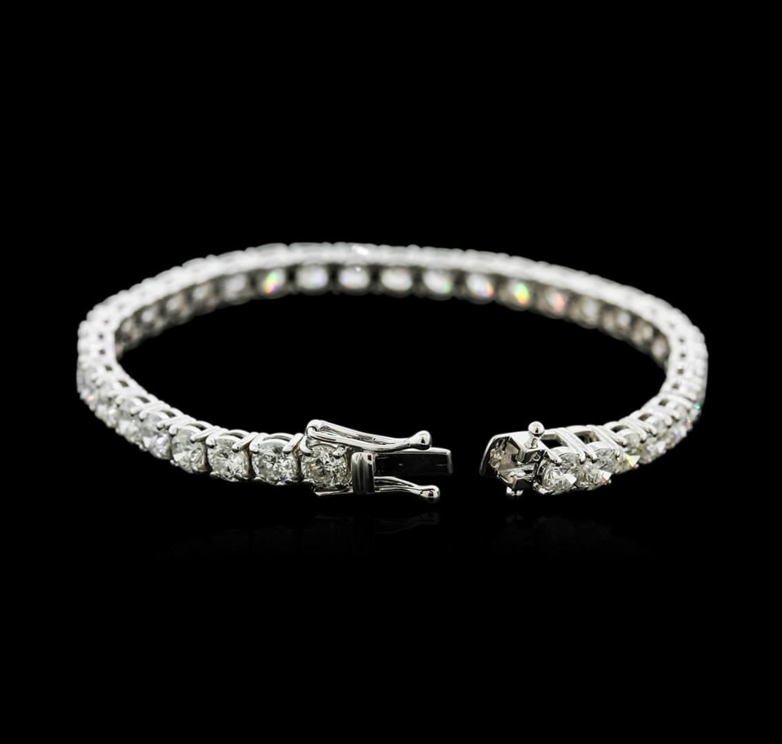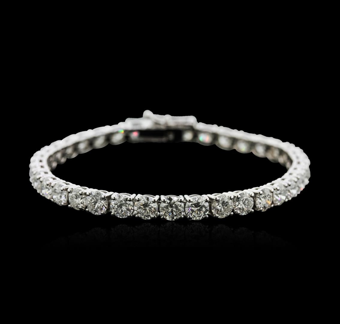 One electronically tested 18KT white gold ladies cast diamond tennis bracelet with a hidden box clasp with safety closer with a bright polish finish. Measurements: 7" in length Identified with markings of "750". Condition is new. Containing: Thirty-Seven prong set round brilliant cut diamonds, measuring 4.80 - 4.80 x 2.88mm (depth est.) approximate total weight of 37 Stones = 14.97ct. Clarity: SI-2 to I-2. Color: G - I, Cut is Good. All diamonds are graded in the mounting, unless otherwise stated. Total Weight of Diamonds 14.97ct. Total Weight of Tennis Bracelet 16.70 grams. GGL Appraised at $42,040.00.