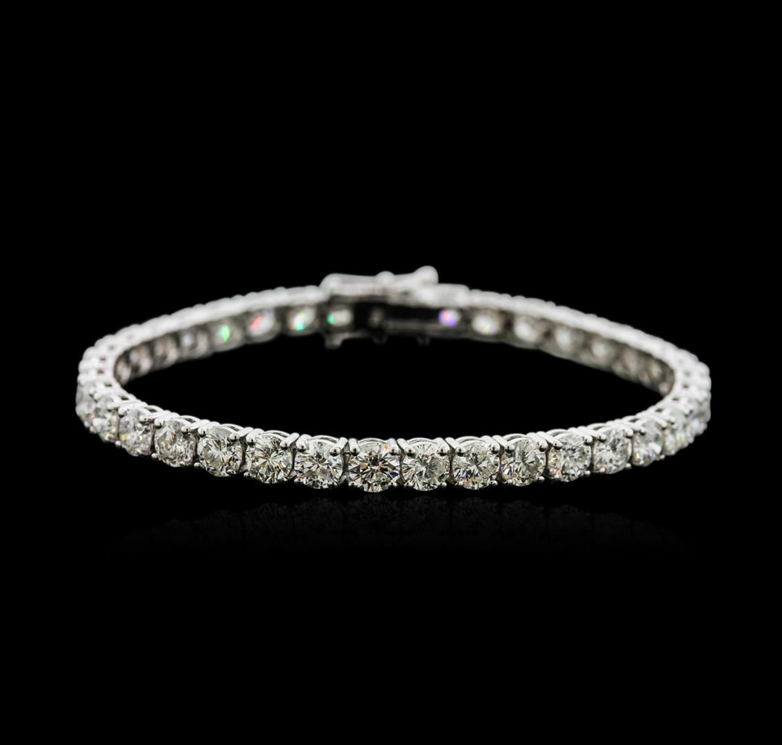One electronically tested 18KT white gold ladies cast diamond tennis bracelet with a hidden box clasp with safety closer with a bright polish finish. Measurements: 7" in length Identified with markings of "750". Condition is new. Containing: Thirty-Seven prong set round brilliant cut diamonds, measuring 4.90 - 4.80 x 2.91mm (depth est.) approximate total weight of 37 Stones = 15.45ct. Clarity: SI-1 to I-2. Color: H - J, Cut is Good. All diamonds are graded in the mounting, unless otherwise stated. Total Weight of Diamonds 15.45ct. Total Weight of Tennis Bracelet 16.70 grams. GGL Appraised at $36,650.00.