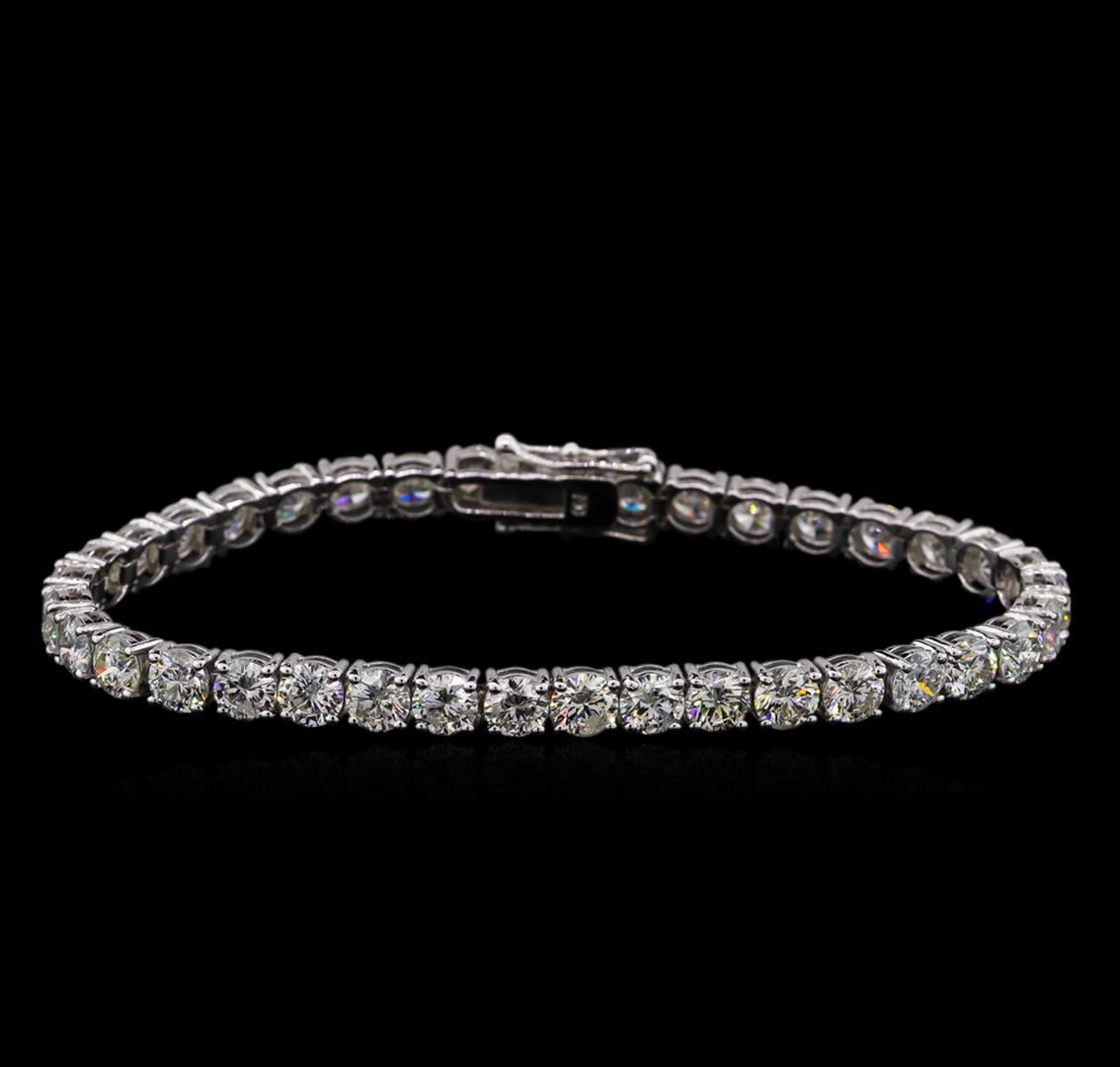 One electronically tested 18KT white gold ladies cast diamond tennis bracelet with a hidden box clasp with safety closer with a bright polish finish. Measurements: 7" in length Identified with markings of "750". Condition is new. Containing: Thirty-Seven prong set round brilliant cut diamonds, measuring 4.90 - 4.80 x 2.91mm (depth est.) approximate total weight of 37 Stones = 15.45ct. Clarity: SI-1 to I-2. Color: H - J, Cut is Good. All diamonds are graded in the mounting, unless otherwise stated. Total Weight of Diamonds 15.45ct. Total Weight of Tennis Bracelet 16.70 grams. GGL Appraised at $36,650.00.