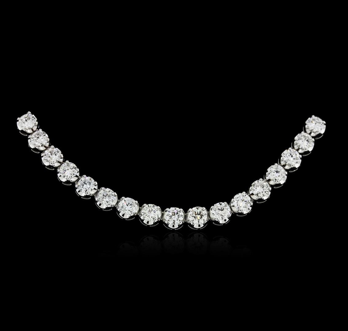 One electronically tested 18KT white gold ladies cast diamond necklace with a hidden box clasp with safety closer with a bright polish finish. Measurements: 16.25" in length Identified with markings of "750". Condition is new. Containing: Seventy-Six prong set round brilliant cut diamonds, measuring 4.00 - 3.80 x 2.34mm (depth est.) approximate total weight of 76 Stones = 16.50ct. Clarity: SI-1 to SI-2. Color: I - J, Cut is Good. All diamonds are graded in the mounting, unless otherwise stated. Total Weight of Diamonds 16.50ct. Total Weight of Necklace 28.80 grams. GGL Appraised at $46,415.00.