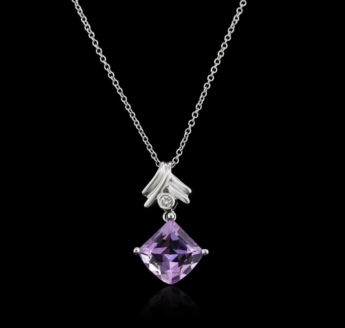 One pendant with chain featuring: 18KT white gold weighing 2.02 grams containing one amethyst center stone with a total weight of 2.17ct and one diamond with a total weight of 0.03ct.