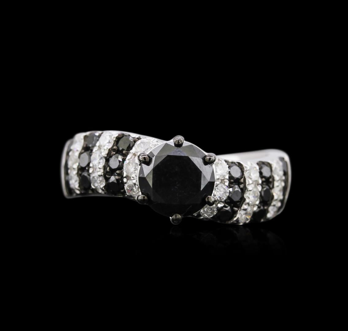 One ring featuring: 18KT white gold weighing 4.72 grams containing one black diamond center stone with a total weight of 1.55ct, 18 black diamonds with a total weight of 0.47ct and 18 round diamonds with a total weight of 0.38ct.