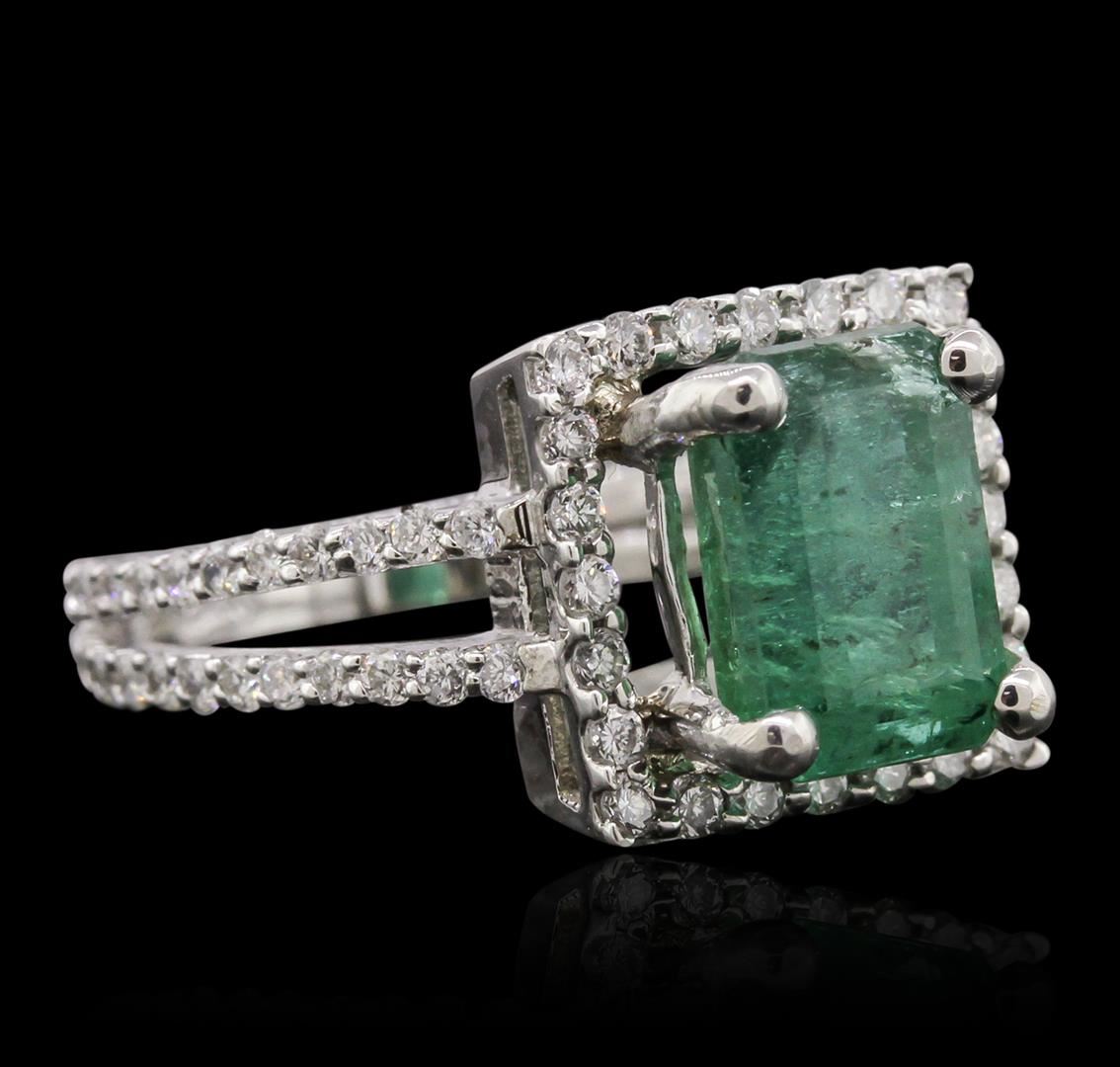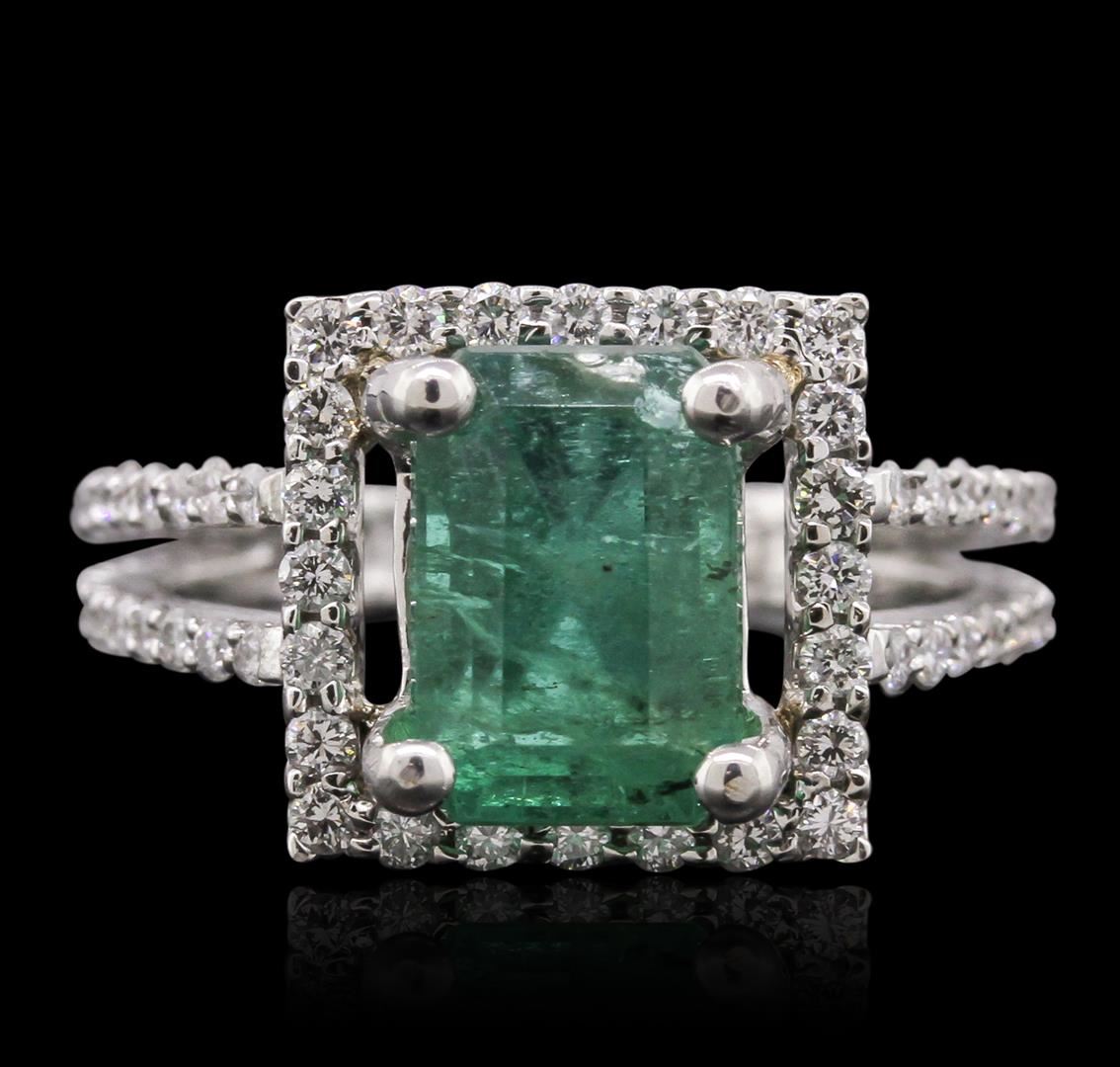 One electronically tested 18KT white gold Ladies combination cast & assembled ring with a bright polish finish. Condition is new. Identified with markings of "18K". Containing: One prong set emerald standard step cut natural emerald, measuring 9.30 x 6.50 x 6.40mm, approximate weight of 2.84ct., clarity is heavily included, type III, medium, very slightly grayish, green color, (GIA G 5/3), cut is good. Colored gemstones are presumed to have been subjected to commonly used color/clarity enhancement processes. Seventy-Six prong set round brilliant cut diamonds, measuring 1.30 - 1.30 x 0.78mm (depth est.) approximate total weight of 76 Stones = 0.61ct. Clarity of I-1 to I-2, Color of I - J, Cut is Good. Total Weight of Colored Stones 2.84ct. Total Weight of Diamonds 0.61ct. Total Weight of Ring 4.60 grams. GGL Appraised at $8,970.00.