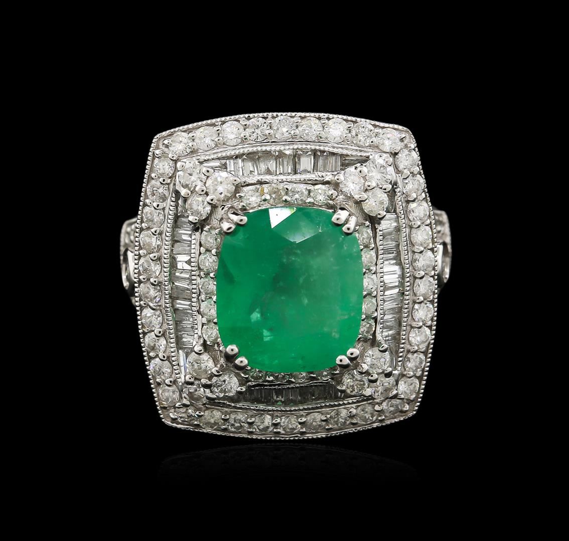 One ring featuring: 18KT white gold weighing 7.15 grams containing one emerald center stone with a total weight of 2.90ct and baguette and round diamonds with a total weight of 1.58ct.
