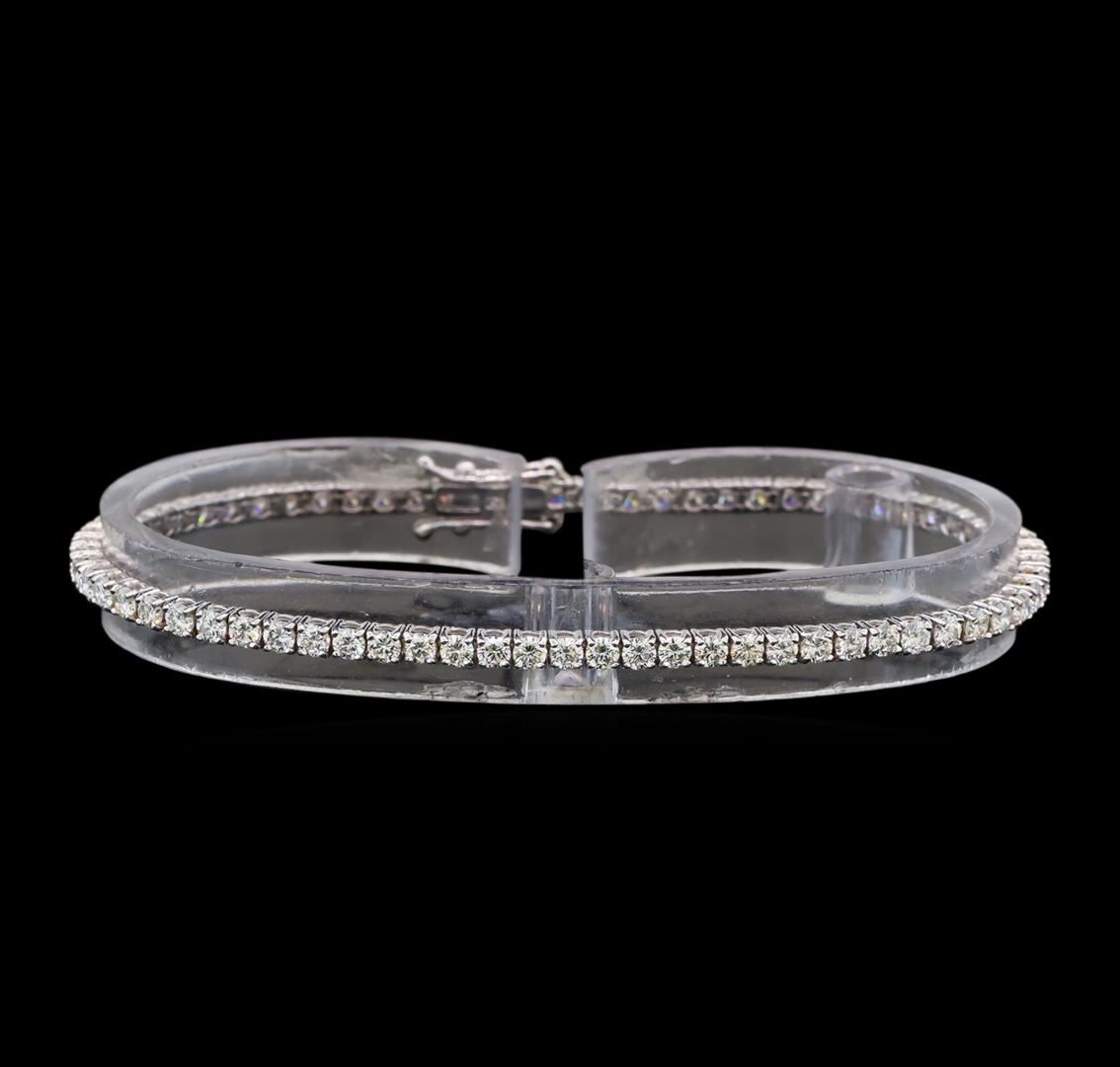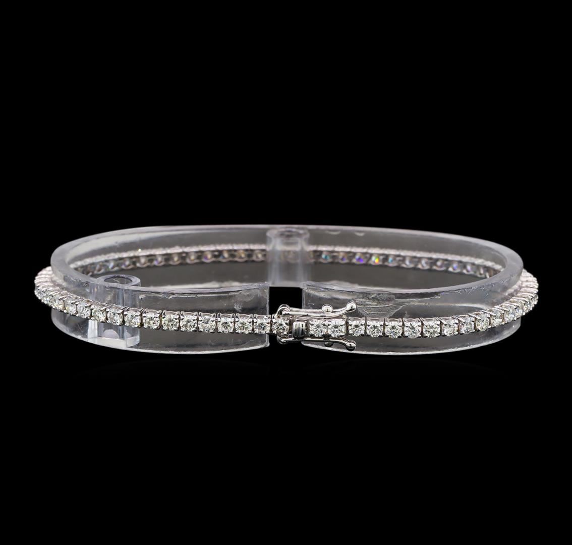One electronically tested 18KT white gold ladies combination cast & assembled diamond tennis bracelet with a hidden box clasp with safety closer with a bright polish finish. Bracelet measures 7" long. Identified with markings of "750". Condition is new. Containing: Sixty-Nine prong set round brilliant cut diamonds, measuring 2.30 - 2.20 x 1.43mm (depth est.) approximate total weight of 69 Stones = 3.04ct. Clarity: SI-1 to SI-2. Color: I - J, Cut is Good. Diamonds are graded in the mounting, unless otherwise stated. Total Weight of Diamonds 3.04ct. Total Weight of Tennis Bracelet 6.70 grams. GGL Appraised at $6,090.00.