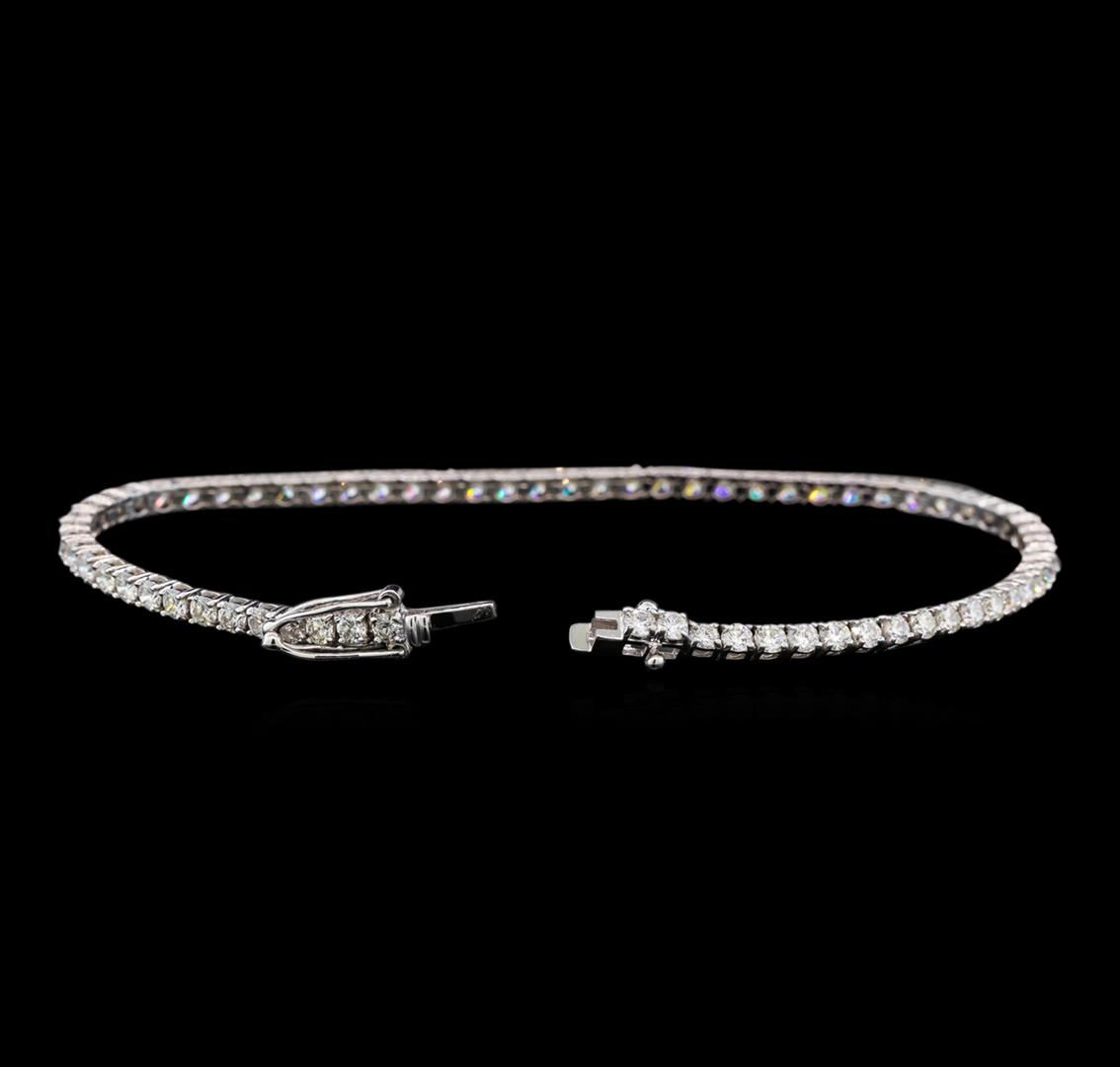 One electronically tested 18KT white gold ladies combination cast & assembled diamond tennis bracelet with a hidden box clasp with safety closer with a bright polish finish. Bracelet measures 7" long. Identified with markings of "750". Condition is new. Containing: Sixty-Nine prong set round brilliant cut diamonds, measuring 2.30 - 2.20 x 1.43mm (depth est.) approximate total weight of 69 Stones = 3.04ct. Clarity: SI-1 to SI-2. Color: I - J, Cut is Good. Diamonds are graded in the mounting, unless otherwise stated. Total Weight of Diamonds 3.04ct. Total Weight of Tennis Bracelet 6.70 grams. GGL Appraised at $6,090.00.