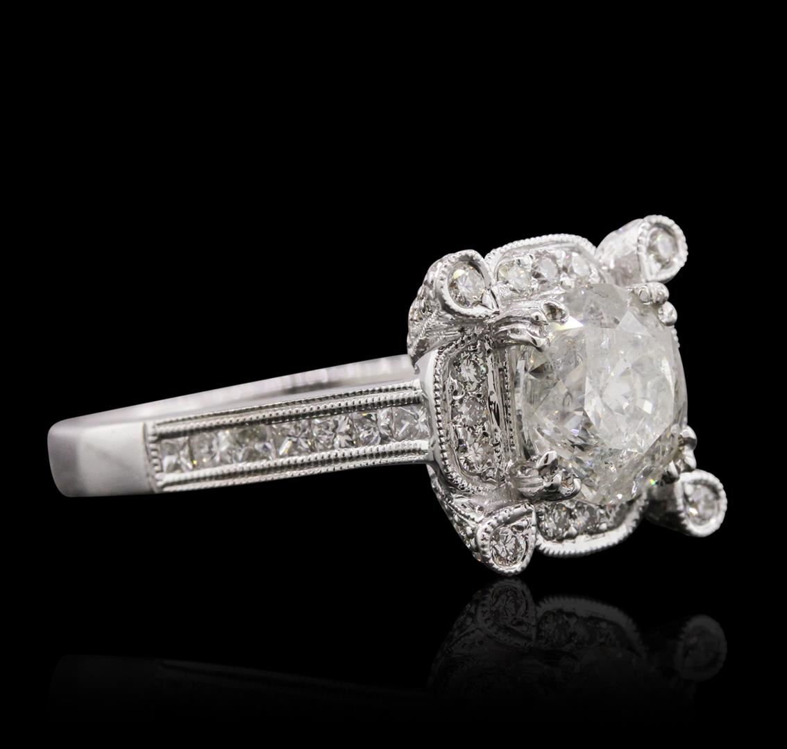 One electronically tested 18KT white gold Ladies combination cast & assembled engagement ring with a bright polish finish. Condition is new. Identified with markings of "18K". Containing: One prong set round brilliant cut diamond, measuring 8.00 - 8.00 x 5.20mm (depth est.) approximate weight of 2.03ct. Clarity: I-3. Color: J, Cut is Good. Fourteen channel set princess cut diamonds, measuring 1.70 x 1.70 x 1.28mm (depth est.) approximate. Total Weight of 14 Stones = 0.42ct. Clarity: SI-1 to SI-2. Color: I - J, Cut is Good. Eighty-Four bead set round brilliant cut diamonds, measuring 1.30 - 1.30 x 0.78mm (depth est.) approximate. Total Weight of 84 Stones = 0.67ct. Clarity: SI-1 to I-1. Color: I - J, Cut is Good. Total Weight of Diamonds 3.13ct. Total Weight of Engagement Ring 6.50 grams. GGL Appraised at $22,690.00.