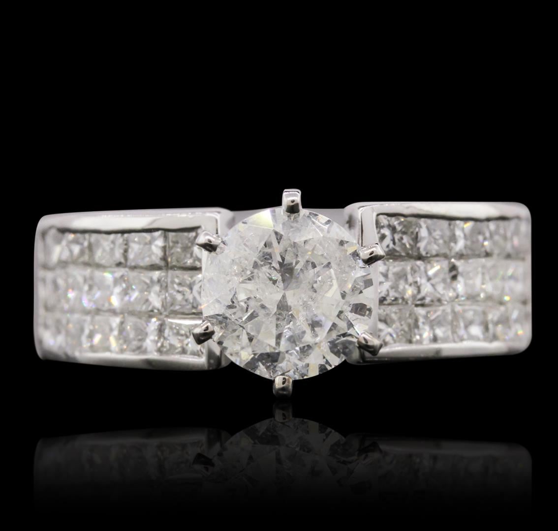 One electronically tested 18KT white gold Ladies combination cast & assembled engagement ring with a bright polish finish. Condition is new. Containing: One prong set round brilliant cut diamond, measuring 7.80 - 7.80 x 4.50mm (depth est.) approximate weight of 1.67ct. Clarity: I-2. Color: H, Cut is Good. Thirty-Six invisible set princess cut diamonds, measuring 2.00 x 2.00 x 1.51mm (depth est.) approximate. Total Weight of 36 Stones = 1.78ct. Clarity: SI-2 to I-1. Color: I - J, Cut is Good. Total Weight of Diamonds 3.45ct. Total Weight of Engagement Ring 8.20 grams. GGL Appraised at $23,910.00.
