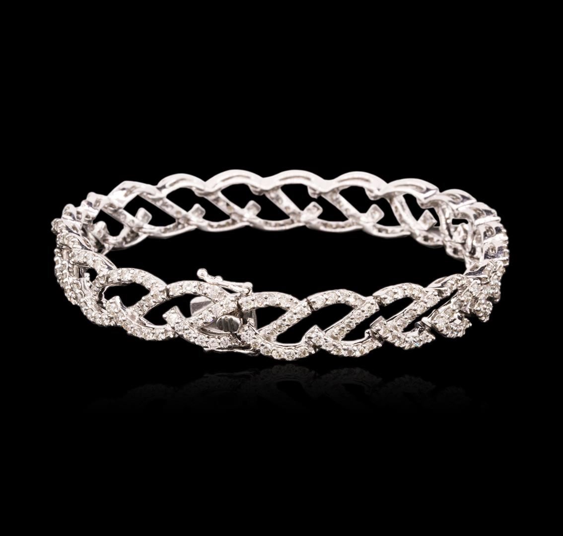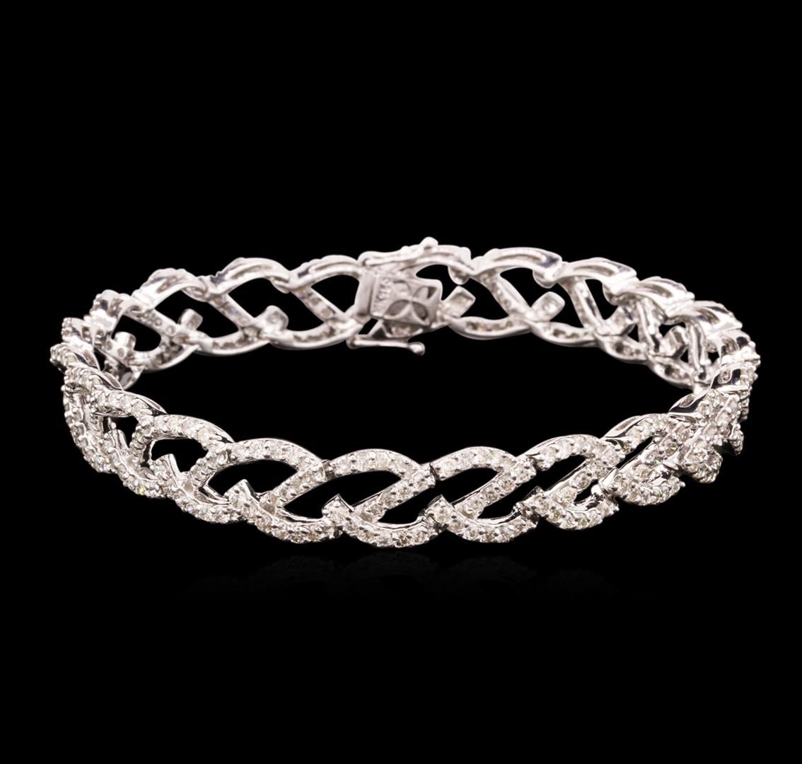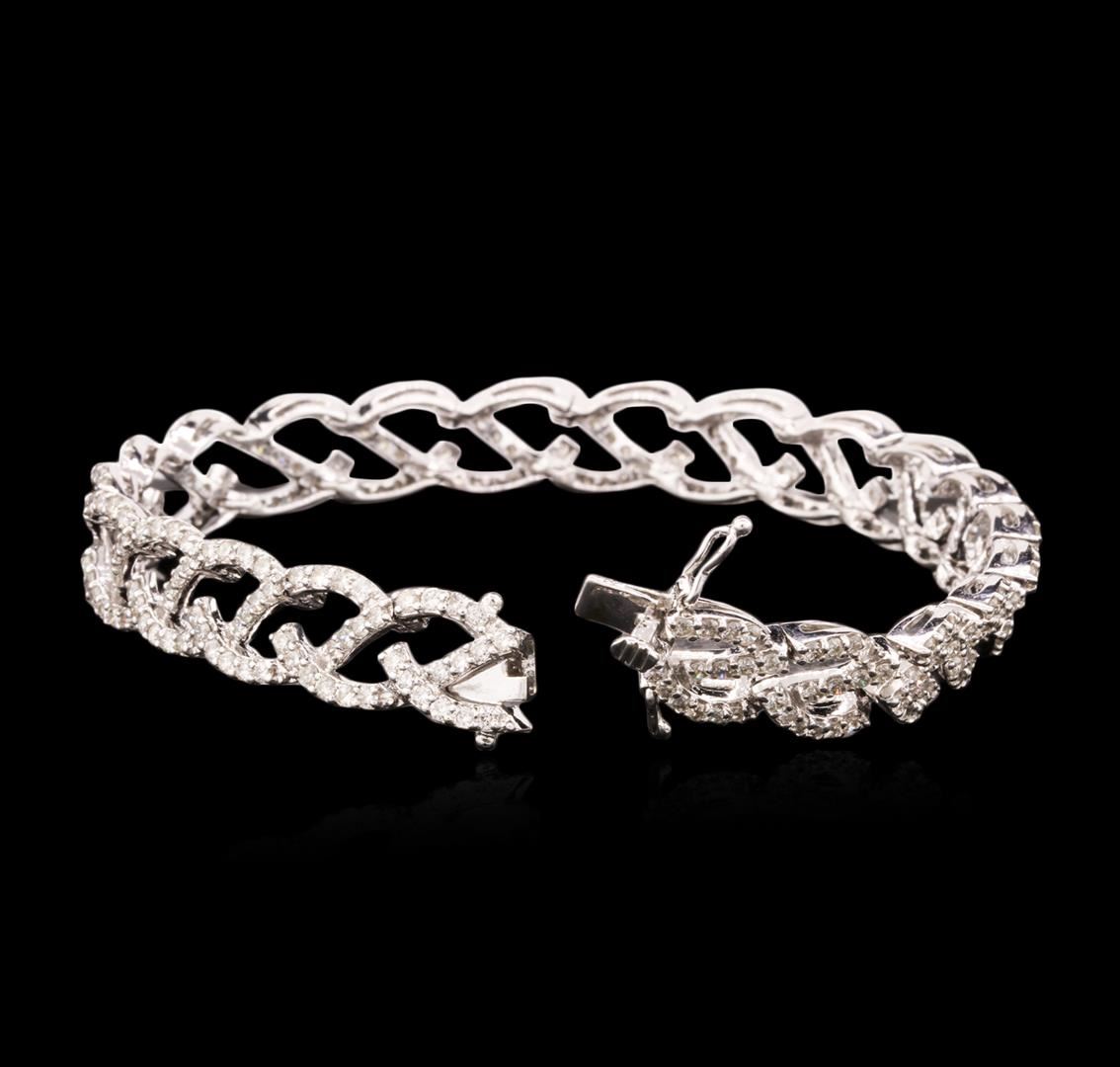 One electronically tested 18KT white gold ladies cast diamond tennis bracelet with a hidden box clasp with a bright polish finish. Measurements: 7" in inch Identified with markings of "750". Condition is new. Containing: Three hundred four prong set round brilliant cut diamonds, measuring 1.50 x 1.50 x 0.90mm (depth est.) approximate total weight of 304 Stones = 3.74ct. Clarity: SI-2 to I-2. Color: J - K, Cut is Good. All diamonds are graded in the mounting, unless otherwise stated. Total Weight of Diamonds 3.74ct. Total Weight of Tennis Bracelet 20.70 grams. GGL Appraised at $7,730.00.