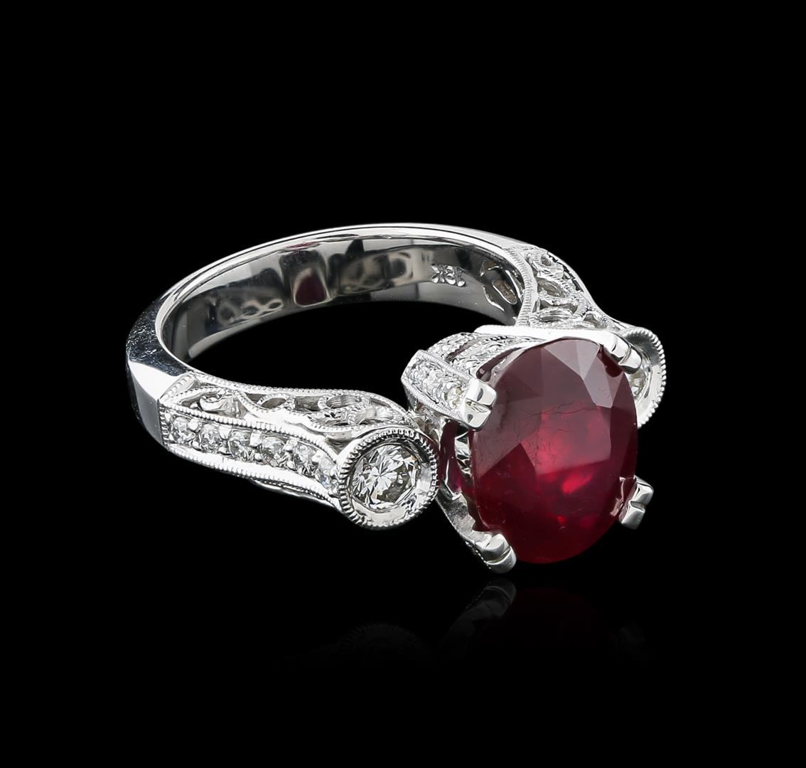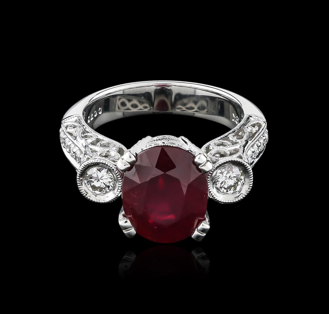 One ring featuring: 18KT white gold weighing 8.00 grams containing one ruby center stone with a total weight of 5.27ct and diamonds with a total weight of 0.75ct.