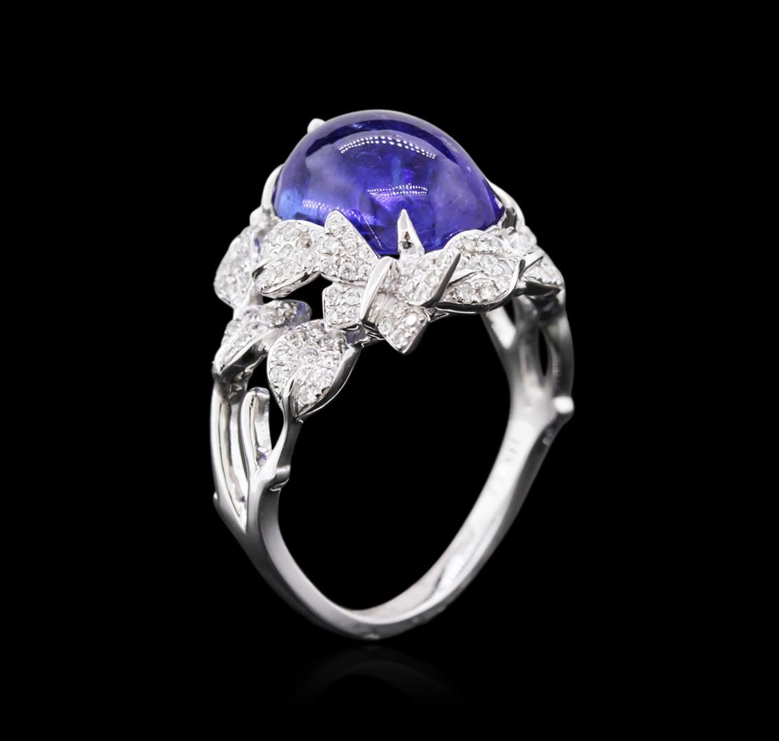 One ring featuring: 18KT white gold weighing 5.13 grams containing one tanzanite center stone with a total weight of 6.32ct and 134 round diamonds with a total weight of 0.46ct.