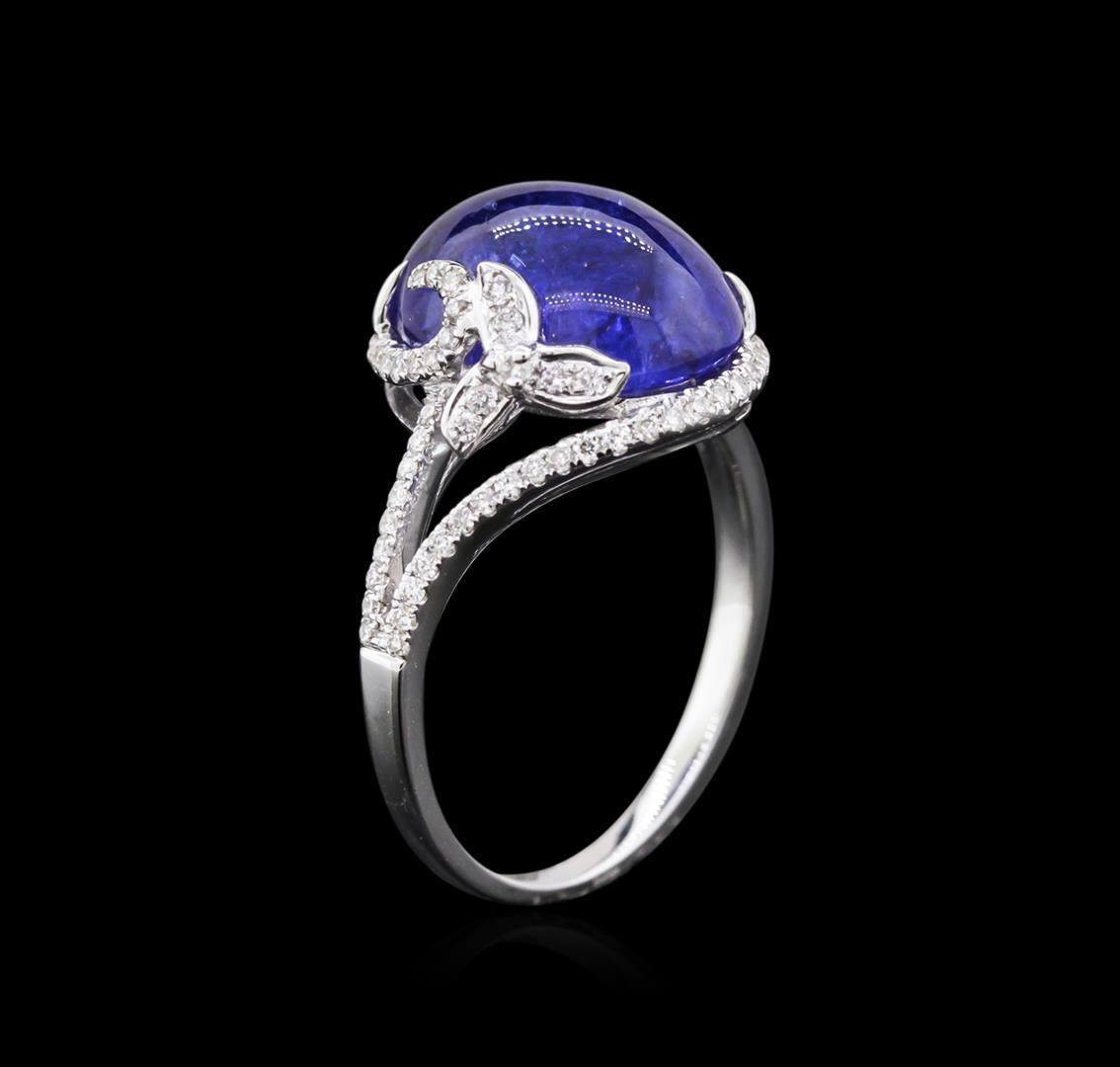 One ring featuring: 18KT white gold weighing 3.11 grams containing one tanzanite center stone with a total weight of 7.29ct and 69 round diamonds with a total weight of 0.22ct.