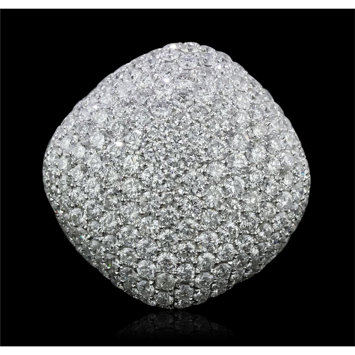 One electronically tested 18KT white gold ladies cast diamond ring with a bright polish finish. Condition is new, good workmanship. The ring features an elaborate diamond set curvature, completed by a six and one-half millimeter wide band. Identified with markings of "750". Containing: Two Hundred Seventy-One pav‚ set round brilliant cut diamonds, measuring 2.10 - 1.80 x 1.17mm (depth est.) approximate. Total Weight of 271 Stones = 7.44ct. Graded in the setting. Clarity: SI-1 to I-1. Color: F - H. Total Weight of Diamonds 7.44ct. Total Weight of Ring 20.40 grams. AIG Appraised at $28,860.00.