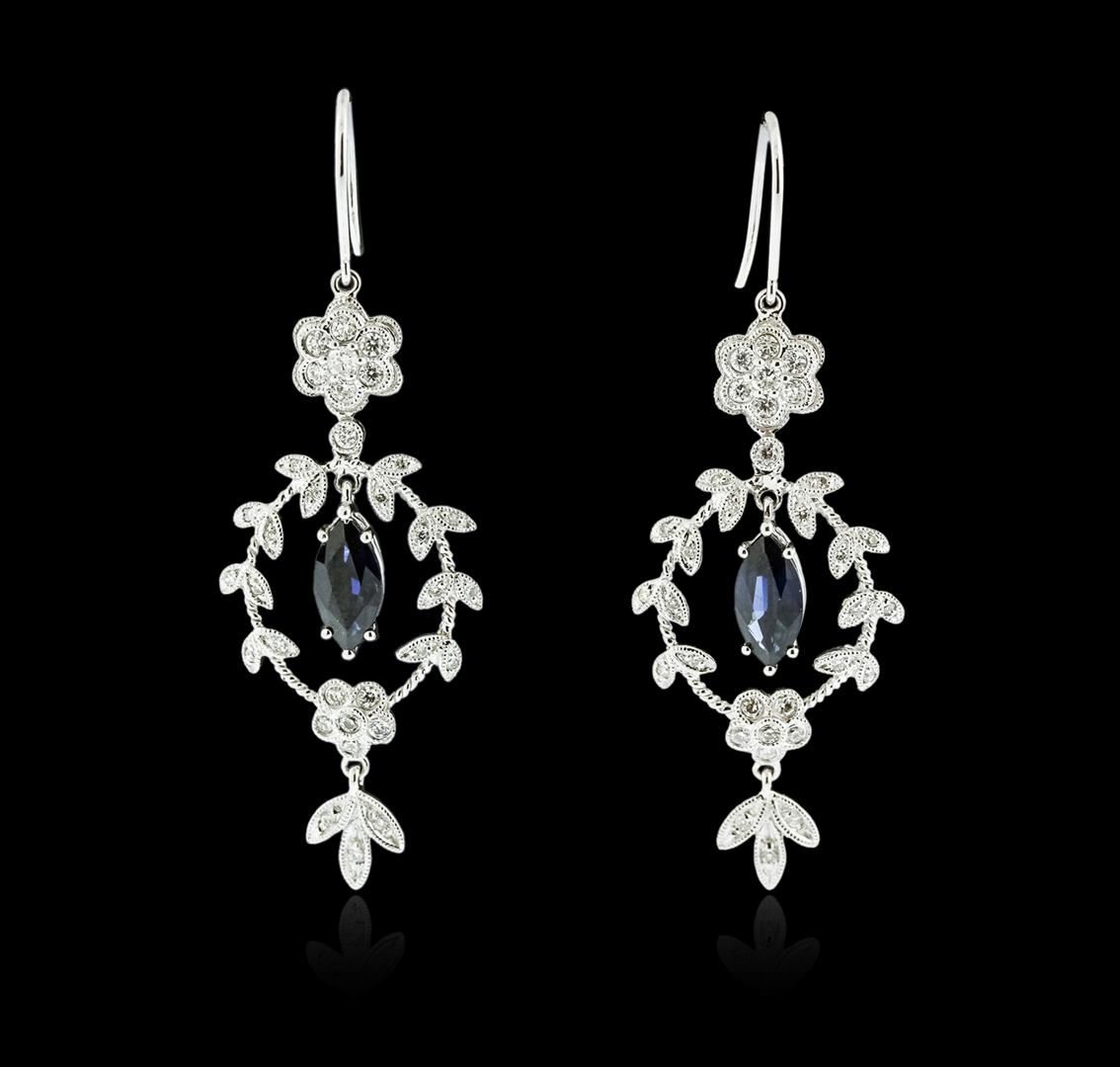 One pair of earrings featuring: 18KT white gold weighing 6.60 grams containing tanzanite weighing a total of 8.84 carats and round diamonds weighing a total of 0.83 carats