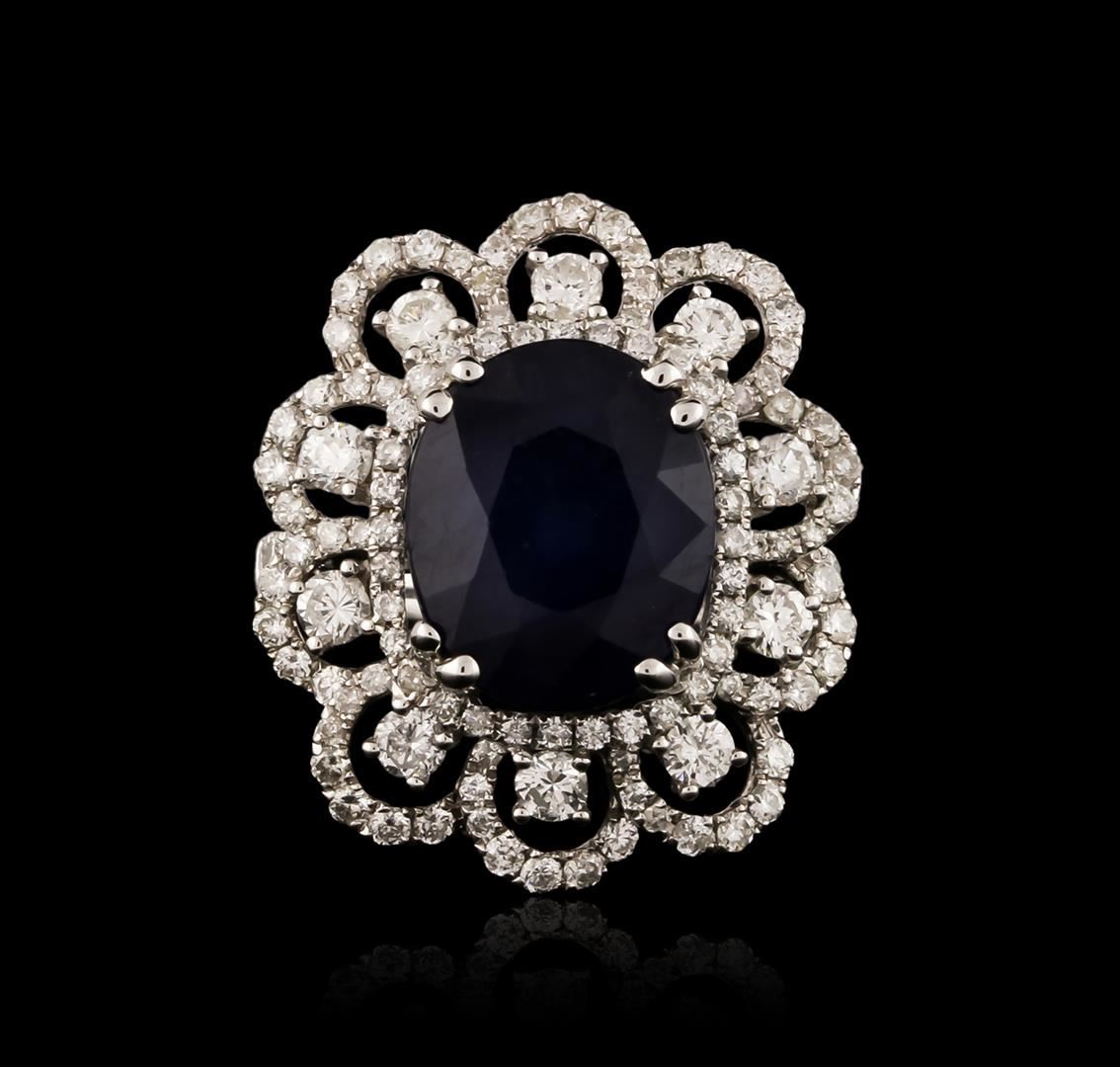 One ring featuring: 18KT white gold weighing 8.62 grams containing one blue sapphire center stone with a total weight of 8.96ct and 120 round diamonds with a total weight of 1.80ct.