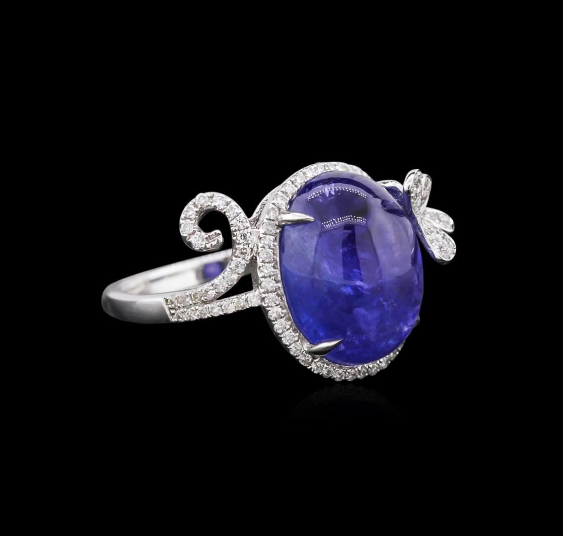 One ring featuring: 18KT white gold weighing 4.15 grams containing one tanzanite center stone with a total weight of 9.03ct and 100 round diamonds with a total weight of 0.38ct.