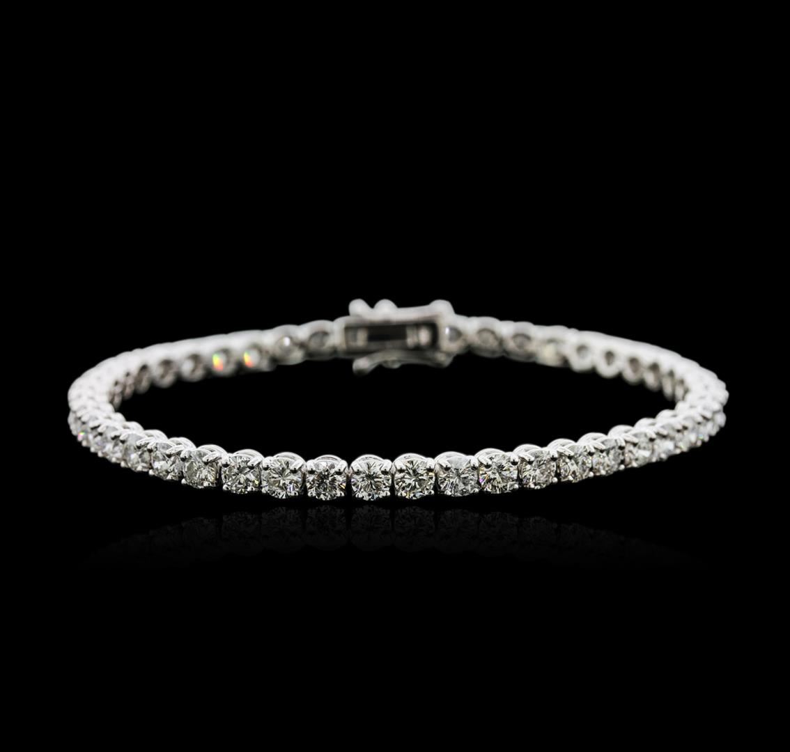 One electronically tested 18KT white gold ladies cast diamond tennis bracelet with a hidden box clasp with safety closer with a bright polish finish. Measurements: 7" in length Identified with markings of "750". Condition is new. Containing: Forty-Five prong set round brilliant cut diamonds, measuring 3.80 - 3.80 x 2.28mm (depth est.) approximate total weight of 45 Stones = 9.04ct. Clarity: SI-1 to I-1. Color: G - I, Cut is Good. All diamonds are graded in the mounting, unless otherwise stated. Total Weight of Diamonds 9.04ct. Total Weight of Tennis Bracelet 15.50 grams. GGL Appraised at $26,625.00.