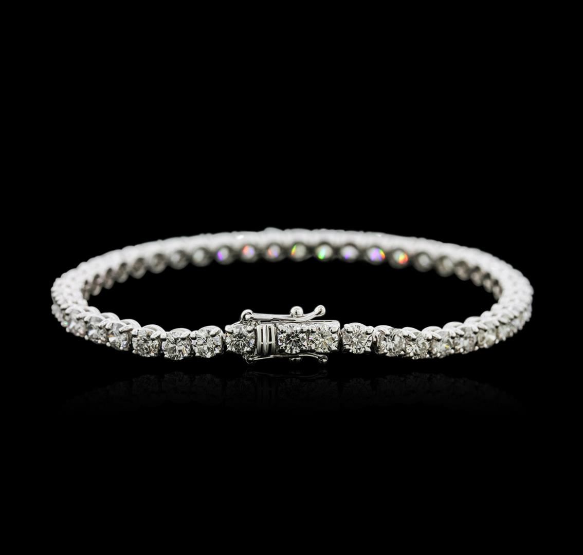 One electronically tested 18KT white gold ladies cast diamond tennis bracelet with a hidden box clasp with safety closer with a bright polish finish. Measurements: 7" in length Identified with markings of "750". Condition is new. Containing: Forty-Five prong set round brilliant cut diamonds, measuring 3.80 - 3.80 x 2.28mm (depth est.) approximate total weight of 45 Stones = 9.04ct. Clarity: SI-1 to I-1. Color: G - I, Cut is Good. All diamonds are graded in the mounting, unless otherwise stated. Total Weight of Diamonds 9.04ct. Total Weight of Tennis Bracelet 15.50 grams. GGL Appraised at $26,625.00.