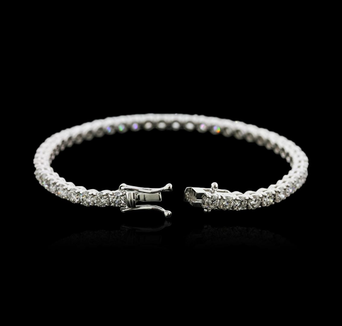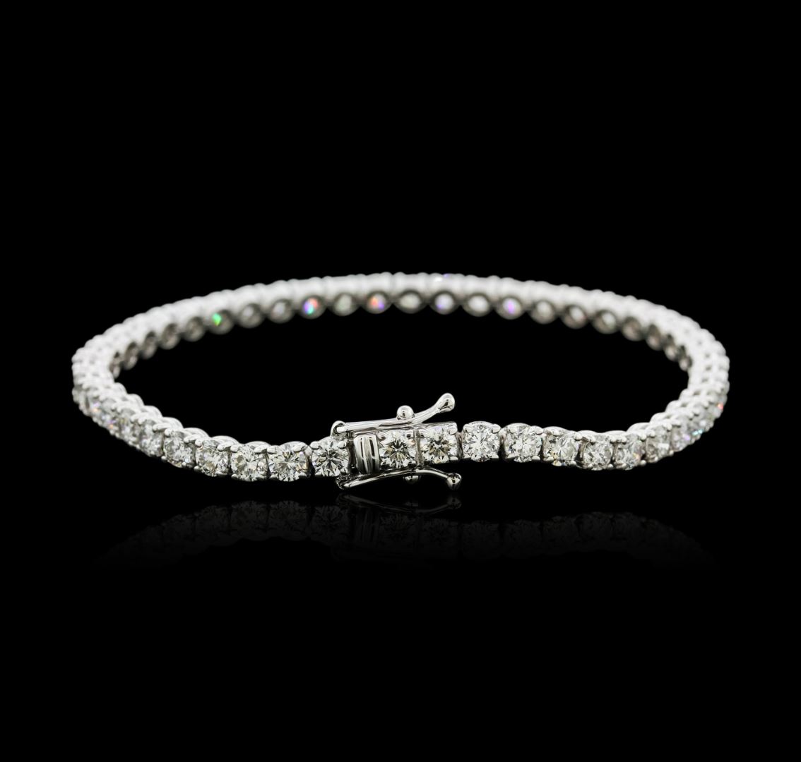 One electronically tested 18KT white gold ladies cast diamond tennis bracelet with a hidden box clasp with safety closer with a bright polish finish. Measurements: 7" in length Identified with markings of "750". Condition is new. Containing: Forty-Seven prong set round brilliant cut diamonds, measuring 3.80 - 3.80 x 2.28mm (depth est.) approximate total weight of 47 Stones = 9.44ct. Clarity: SI-1 to I-1. Color: H - I, Cut is Good. All diamonds are graded in the mounting, unless otherwise stated. Total Weight of Diamonds 9.44ct. Total Weight of Tennis Bracelet 16.30 grams. GGL Appraised at $22,740.00.