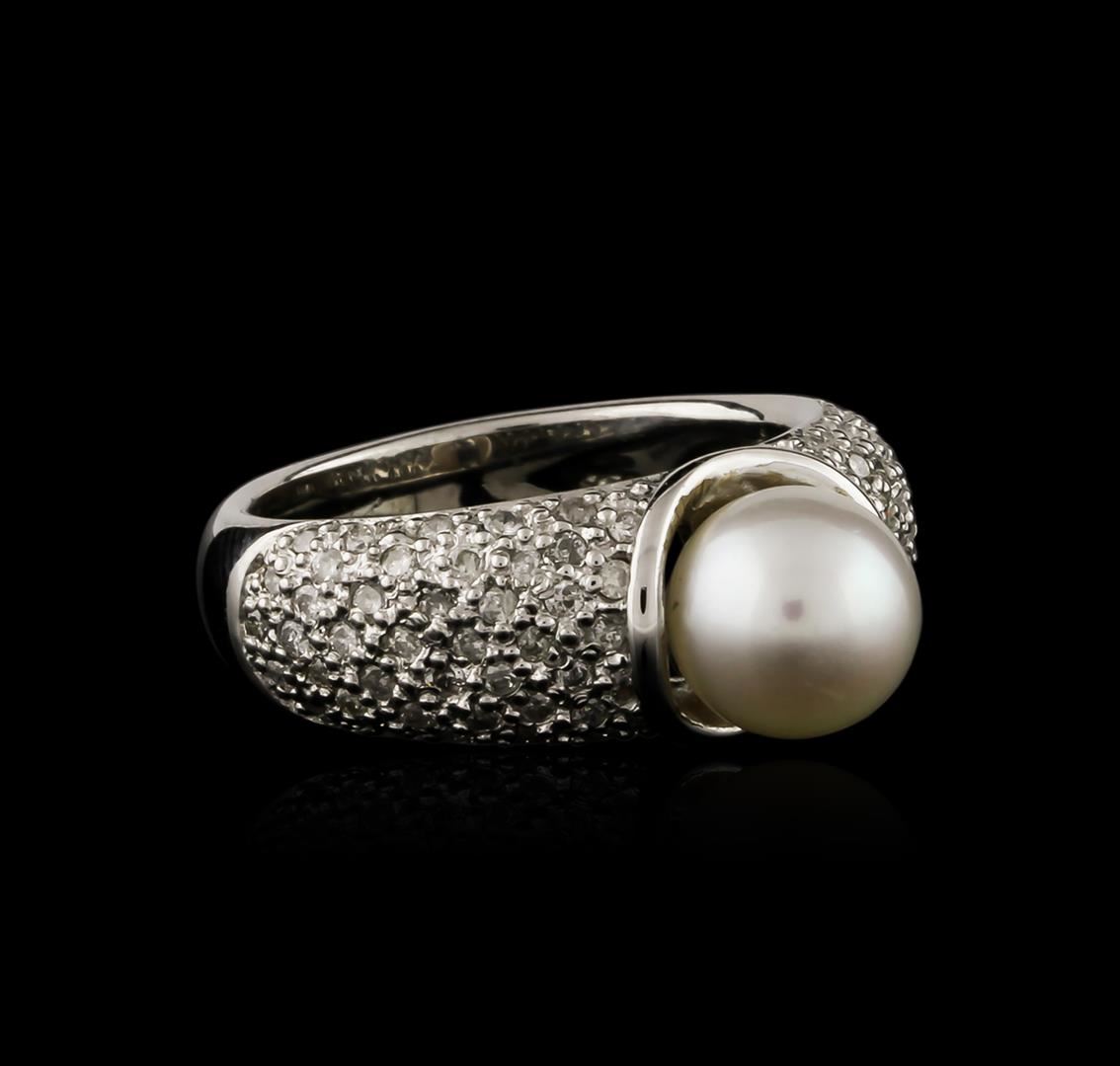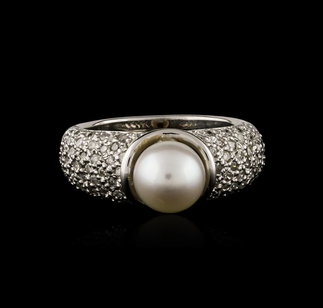 One ring featuring: 18KT white gold weighing 7.70 grams containing one pearl measuring approximately 7.50 mm and pave set round diamonds with a total weight of 0.75ct.