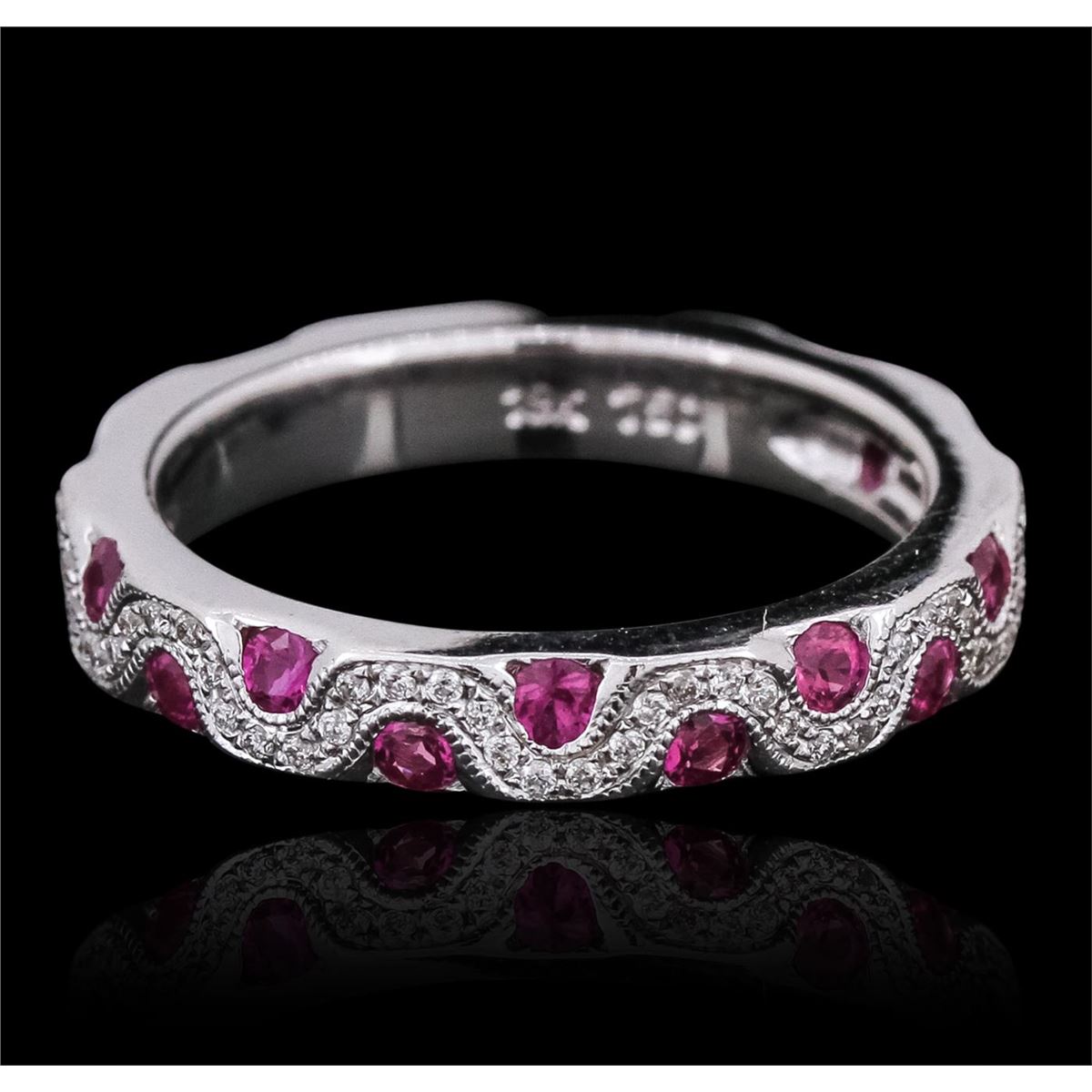 One Ring featuring: 18KT White Gold with a total weight of 4.80 grams, pink sapphires, and Diamonds with a total weight of 0.20ctw.
