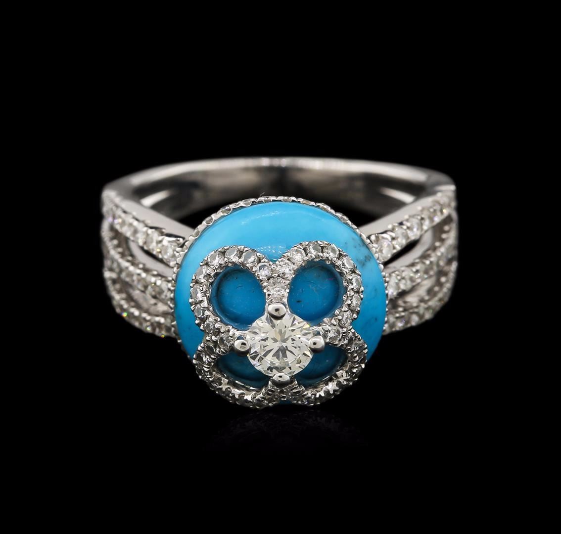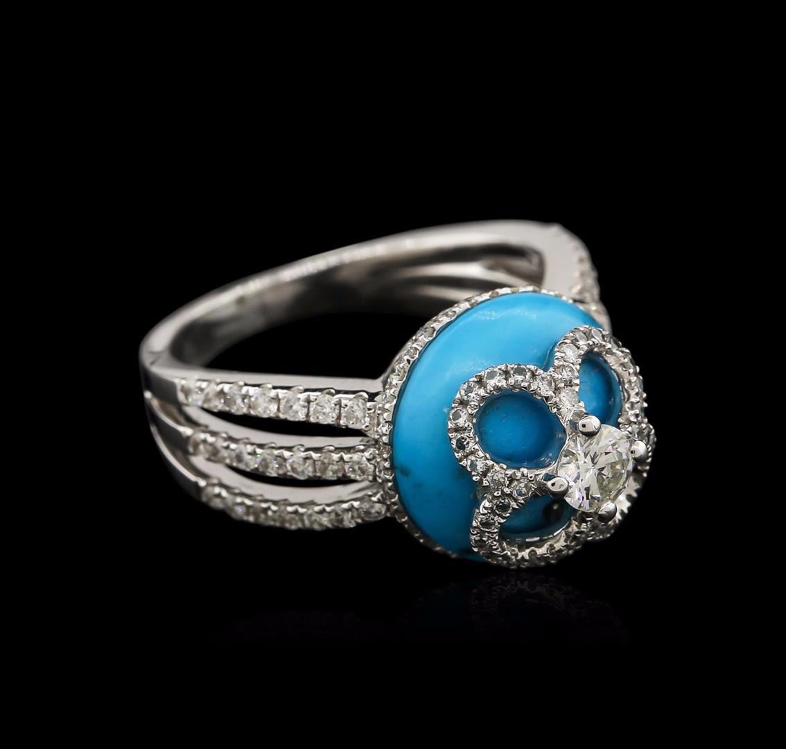 One ring featuring: 18KT white gold weighing 6.00 grams containing one turquoise and 113 round diamonds with a total weight of 0.97ct.