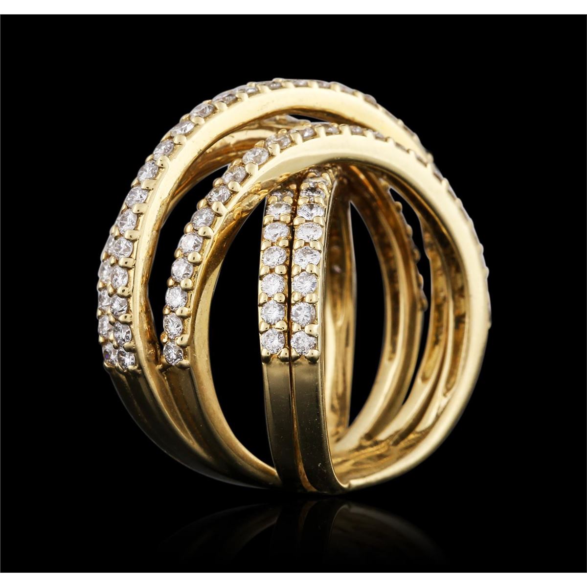 One electronically tested 18KT yellow gold ladies cast diamond ring with a bright polish finish. Trademark is Sonia B. Identified with markings of "18K". Condition is new. Containing: One Hundred Nine prong set round brilliant cut diamonds, measuring 1.60 - 1.60 x 0.96mm (depth est.) approximate total weight of 109 Stones = 1.62ct. Clarity: SI-1 to SI-2. Color: H - I, Cut is Good. All diamonds are graded in the mounting, unless otherwise stated. Total Weight of Diamonds 1.62ct. Total Weight of Ring 14.00. grams. GGL Appraised at $5,765.00.