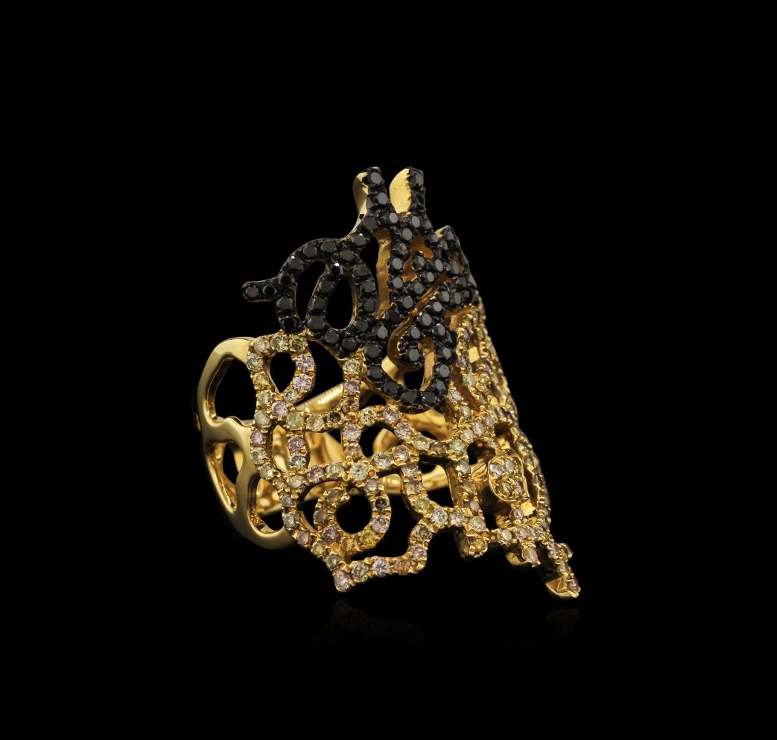One electronically tested 18KT yellow gold ladies cast diamond ring with a bright polish finish. Identified with markings of "18K". Condition is new. Containing: Sixty-Nine prong set round brilliant cut diamonds, measuring 1.10 - 1.10 x 0.66mm (depth est.) approximate total weight of 69 Stones = 0.59ct. Cut is Good. One Hundred Thirty-One prong set round brilliant cut diamonds, measuring 1.10 - 1.10 x 0.66mm (depth est.) approximate total weight of 131 Stones = 1.04ct. Clarity: SI-1 to I-1, Cut is Good. Diamonds are graded in the mounting, unless otherwise stated. Total Weight of Diamonds 1.63ct. Total Weight of Ring 11.00 grams. GGL Appraised at $5,875.00.