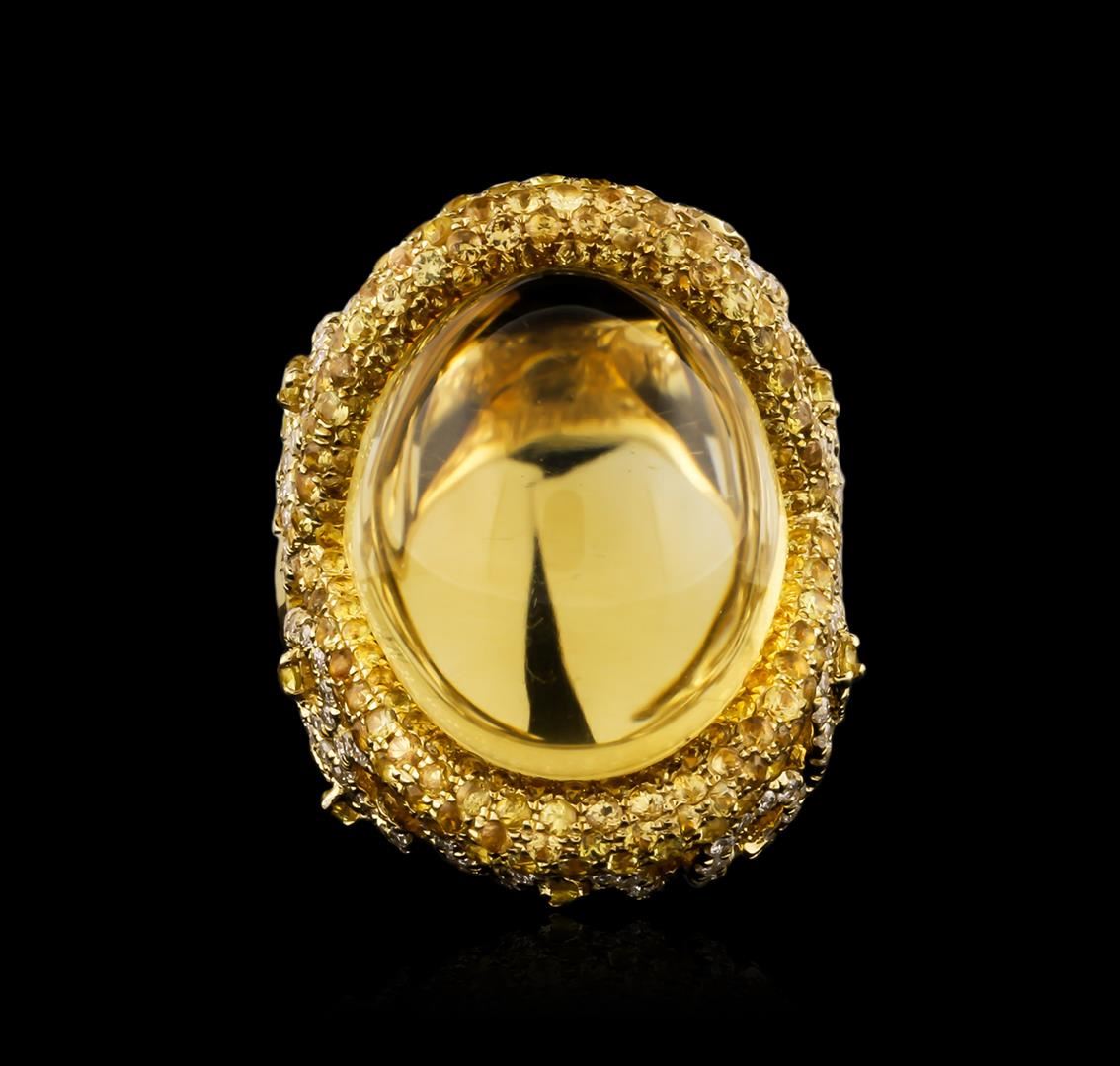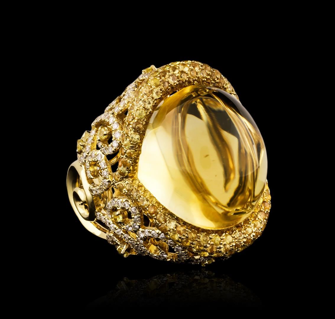 One ring featuring: 18KT yellow gold weighing 17.65 grams containing one citrine center stone with a total weight of 37.03ct, 200 yellow sapphires with a total weight of 3.19ct, and 237 round diamonds with a total weight of 1.36ct.