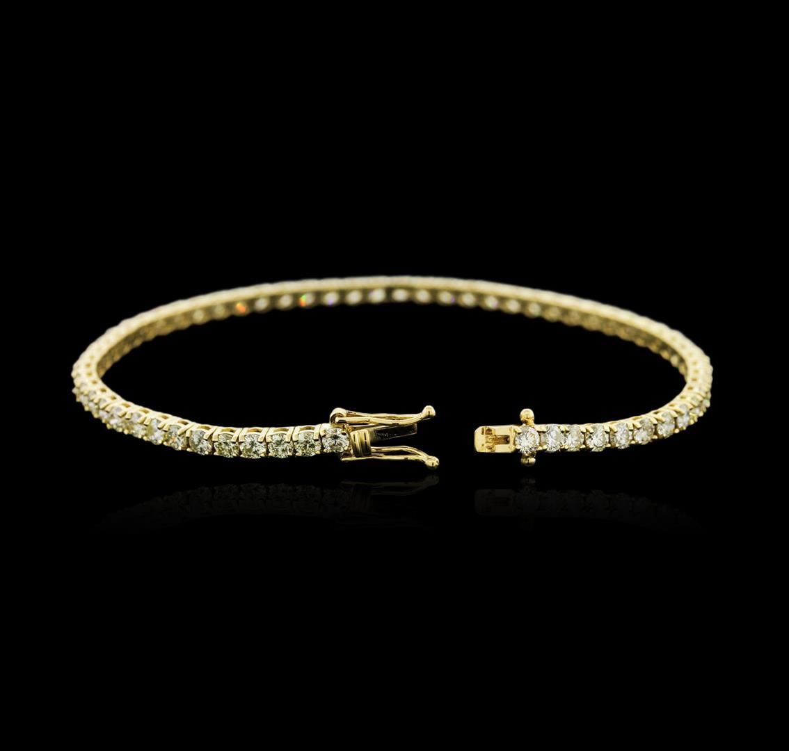 One electronically tested 18KT yellow gold ladies cast diamond tennis bracelet with a hidden box clasp with safety closer with a bright polish finish. Measurements: 7" in length Identified with markings of "750". Condition is new. Containing: Sixty-Two prong set round brilliant cut diamonds, measuring 2.80 - 2.80 x 1.68mm (depth est.) approximate total weight of 62 Stones = 4.98ct. Clarity: SI-1 to SI-2. Color: L - M, Cut is Good. All diamonds are graded in the mounting, unless otherwise stated. Total Weight of Diamonds 4.98ct. Total Weight of Tennis Bracelet 9.20 grams. GGL Appraised at $6,130.00.