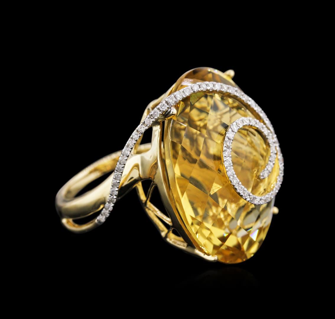 One ring featuring: 18KT yellow gold weighing 6.57 grams containing one citrine center stone with a total weight of 41.50ct and 61 round diamonds with a total weight of 0.34ct.