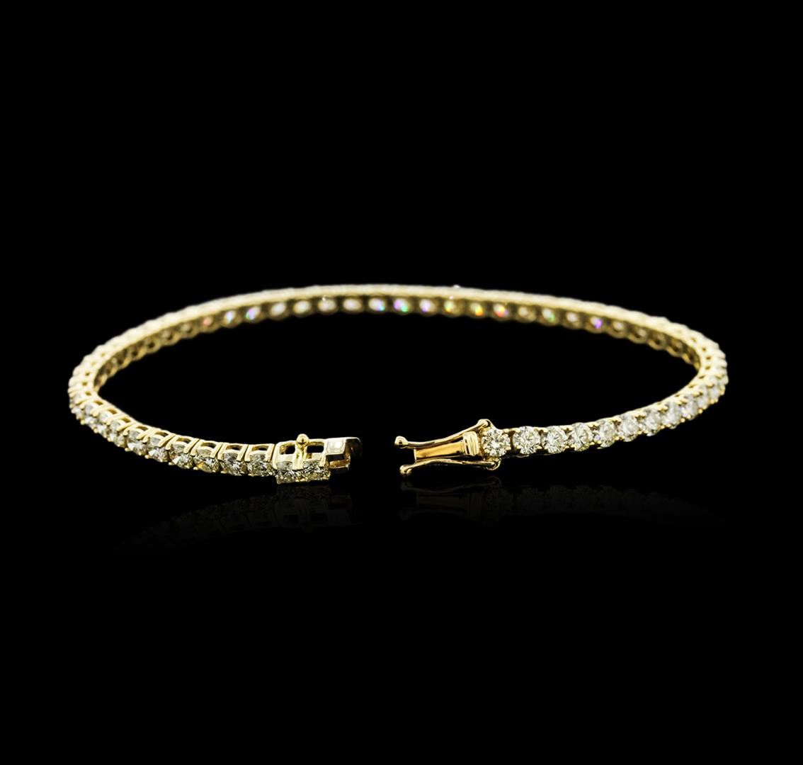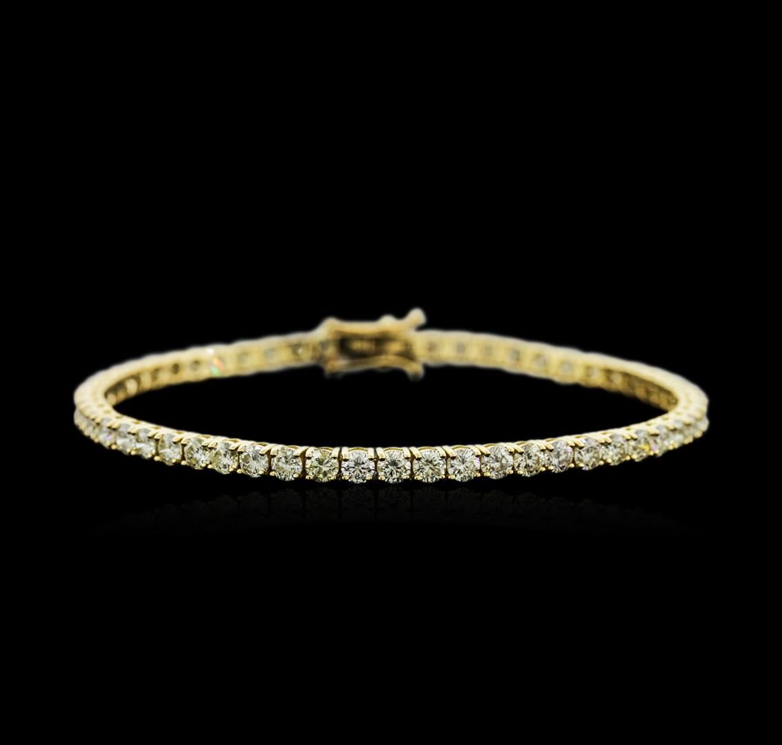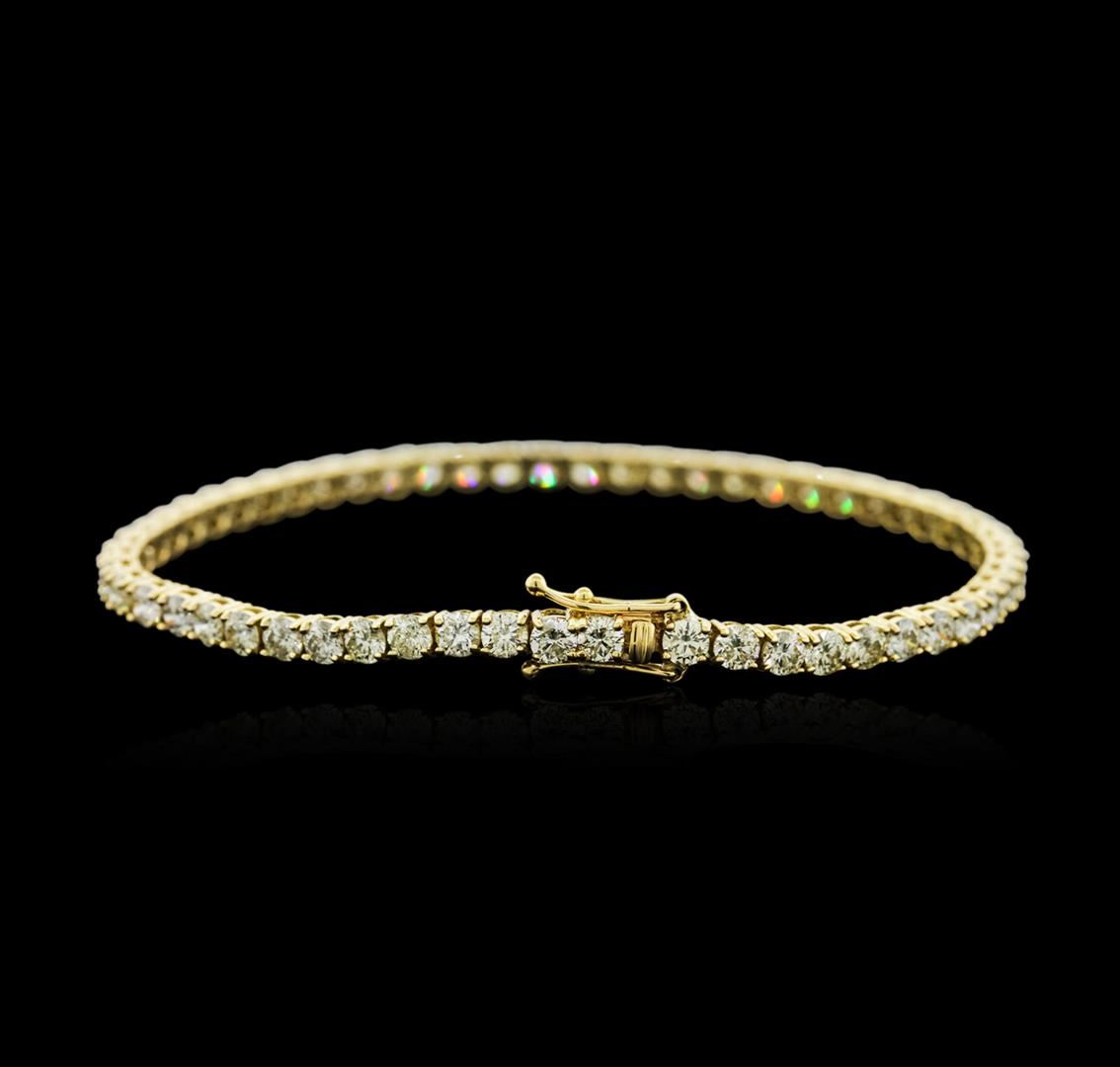 One electronically tested 18KT yellow gold ladies cast diamond tennis bracelet with a hidden box clasp with safety closer with a bright polish finish. Measurements: 7" in length Identified with markings of "750". Condition is new. Containing: Fifty-Seven prong set round brilliant cut diamonds, measuring 3.10 - 3.10 x 1.86mm (depth est.) approximate total weight of 57 Stones = 6.21ct. Clarity: SI-1 to I-1. Color: K - L, Cut is Good. All diamonds are graded in the mounting, unless otherwise stated. Total Weight of Diamonds 6.21ct. Total Weight of Tennis Bracelet 9.40 grams. GGL Appraised at $9,445.00.