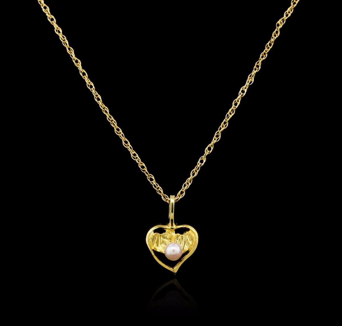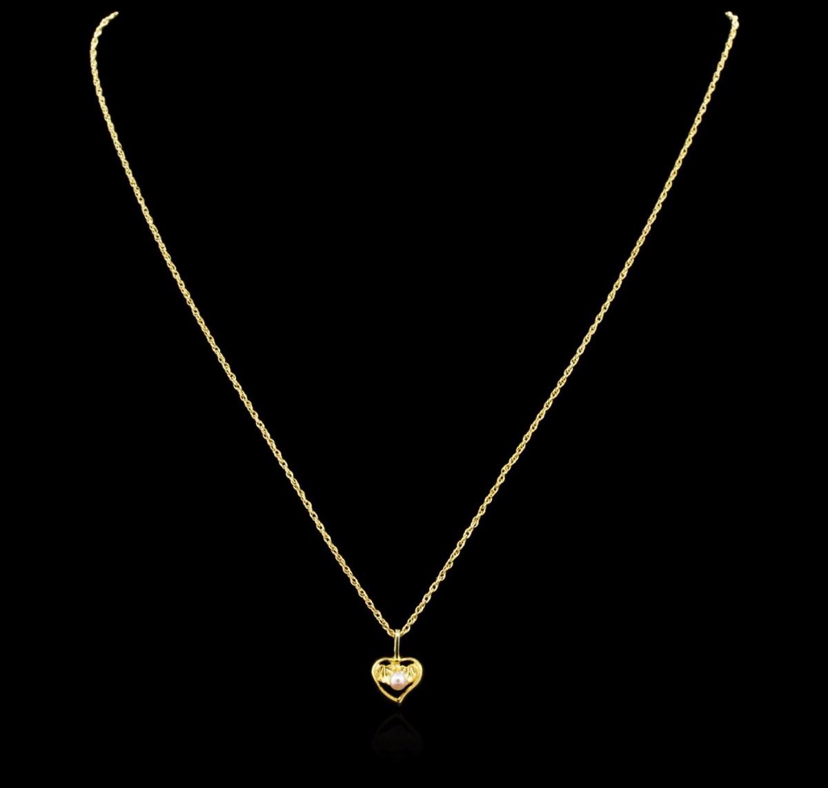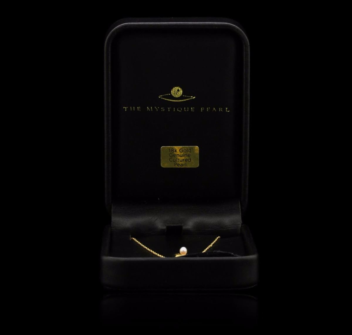 One necklace featuring: 18KT yellow gold weighing 2.70 grams containing one genuine cultured pearl.