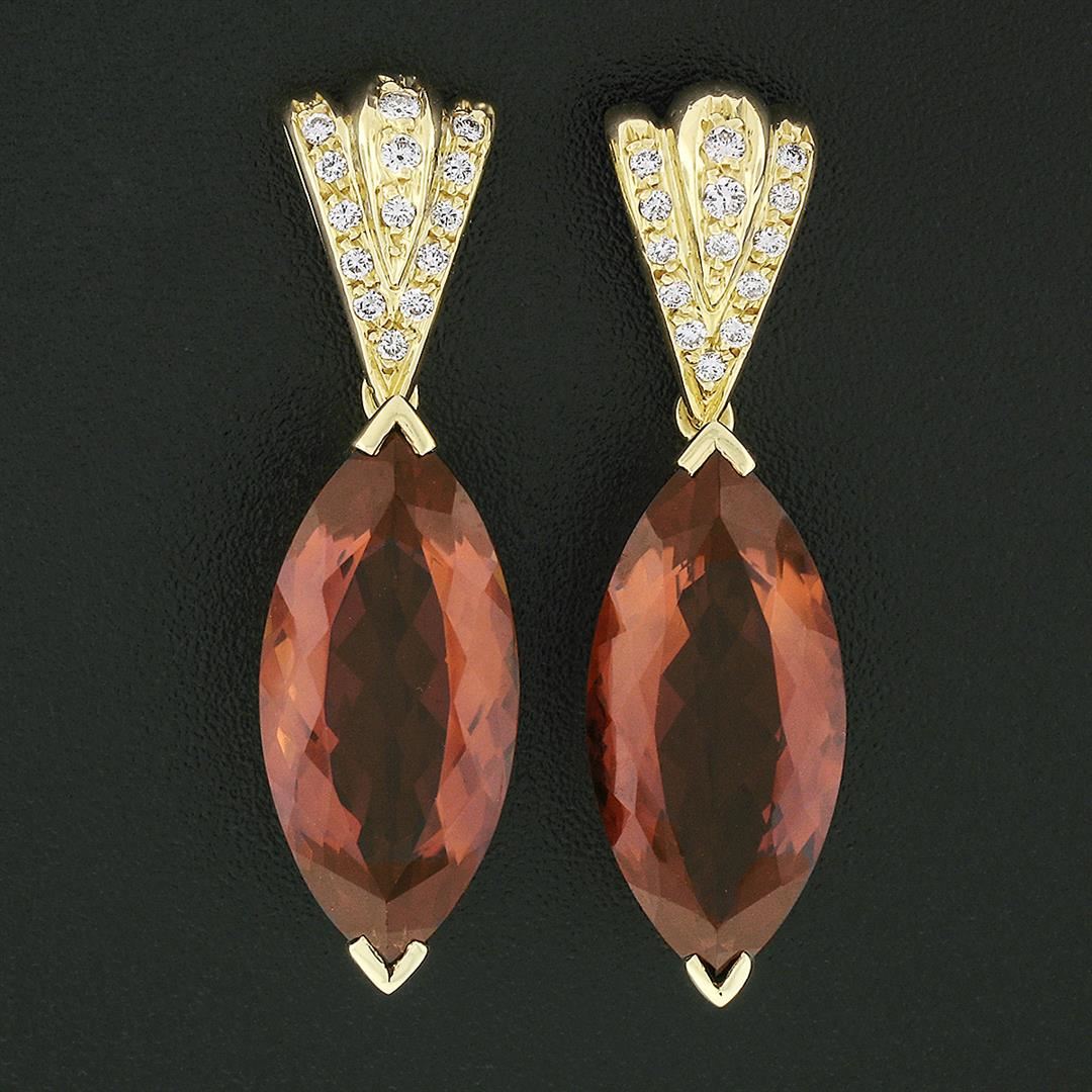 18k Gold 10.0 ctw Marquise Cut Fine Orange Citrine & Diamond Drop Dangle Earring