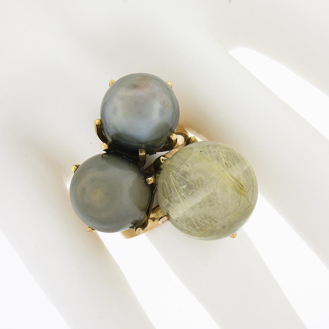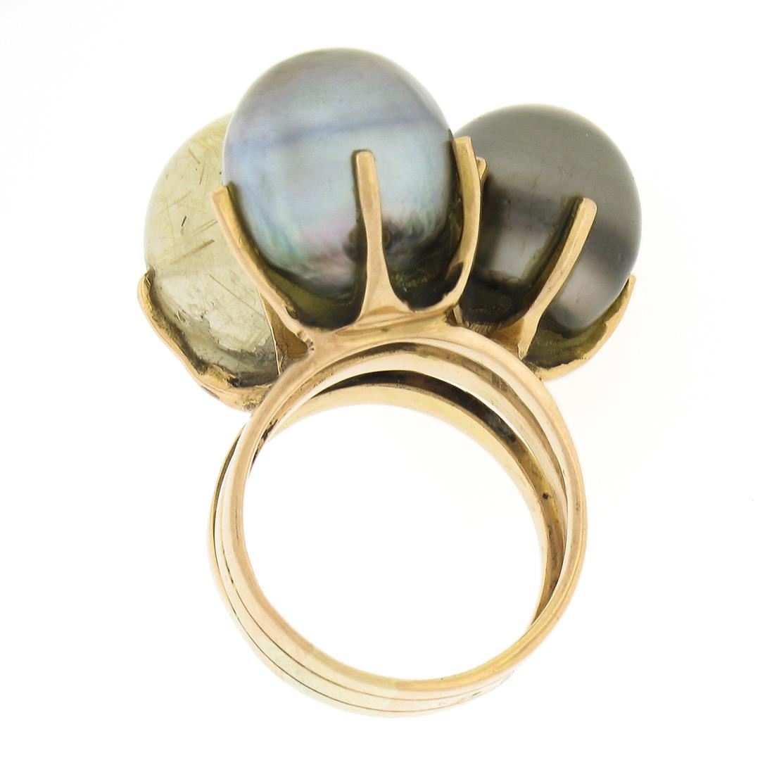 18k Rose Gold Tahitian Pearl & Rutilated Quartz Large High Profile Cocktail Ring