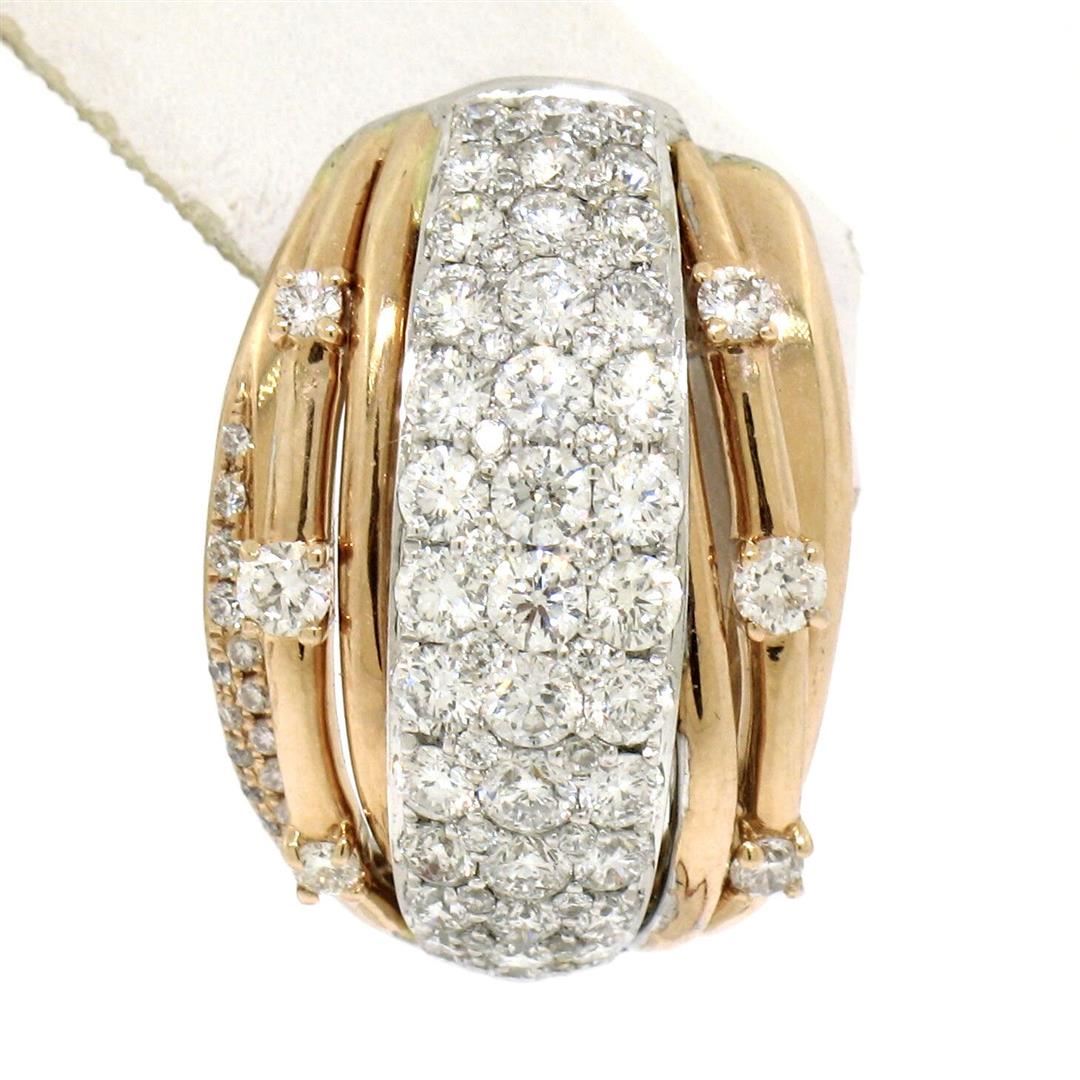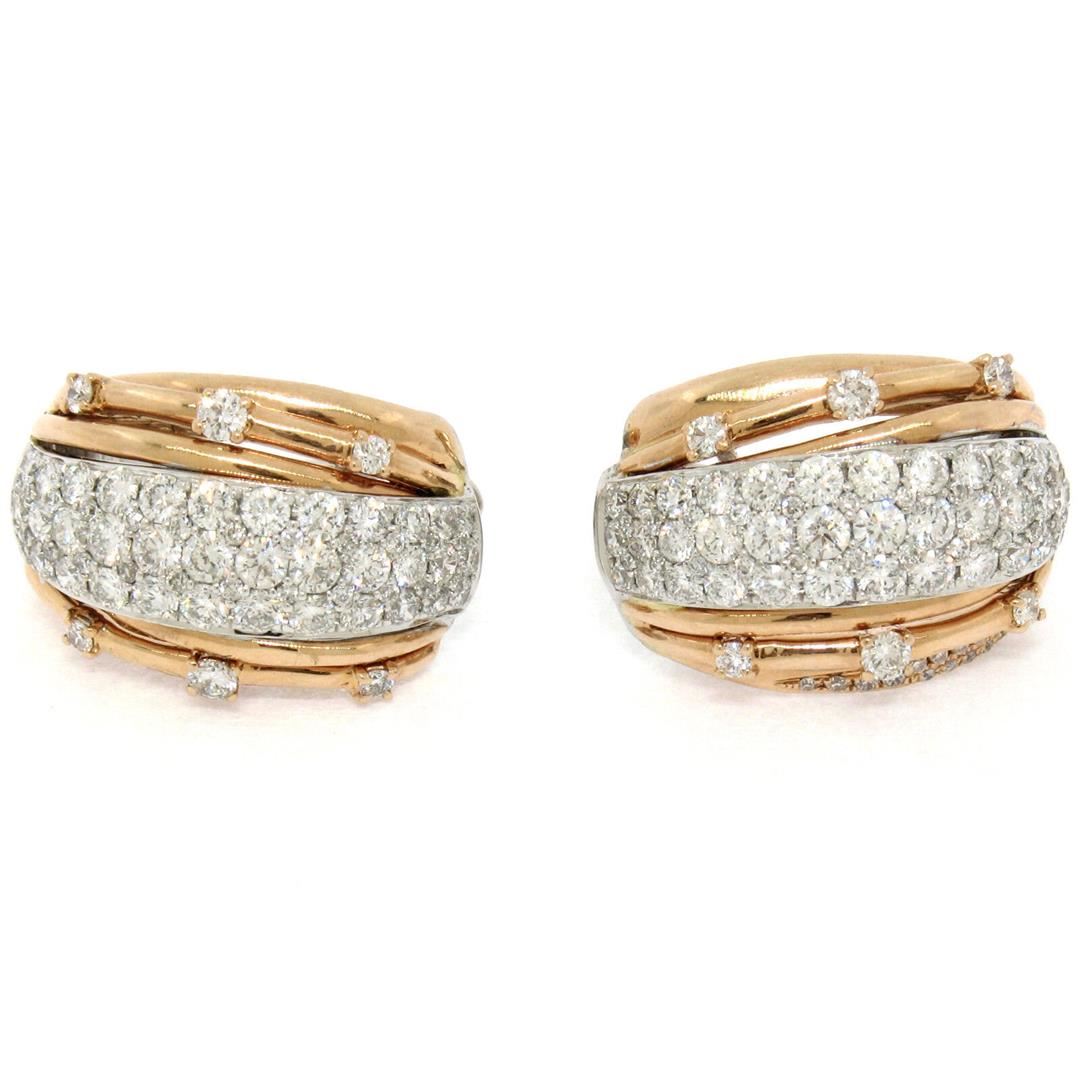 A new solid 18k rose and white gold cuff earrings, featuring 174 round brilliant cut natural diamonds (F/G- VVS2/VS1; 2.62ctw). The earrings measure approximately 20.50x14.25mm and weigh a total of 10.70 grams.