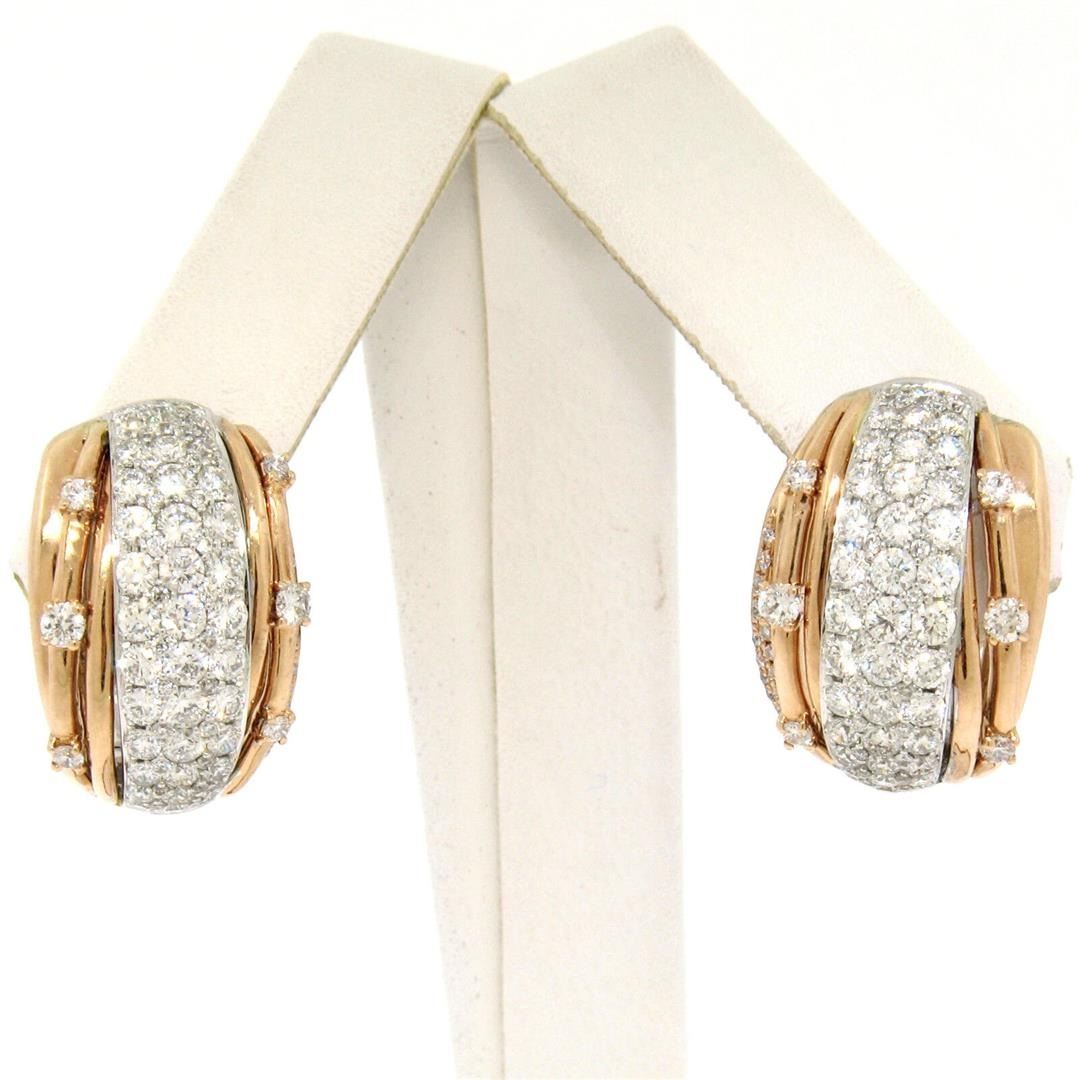 A new solid 18k rose and white gold cuff earrings, featuring 174 round brilliant cut natural diamonds (F/G- VVS2/VS1; 2.62ctw). The earrings measure approximately 20.50x14.25mm and weigh a total of 10.70 grams.