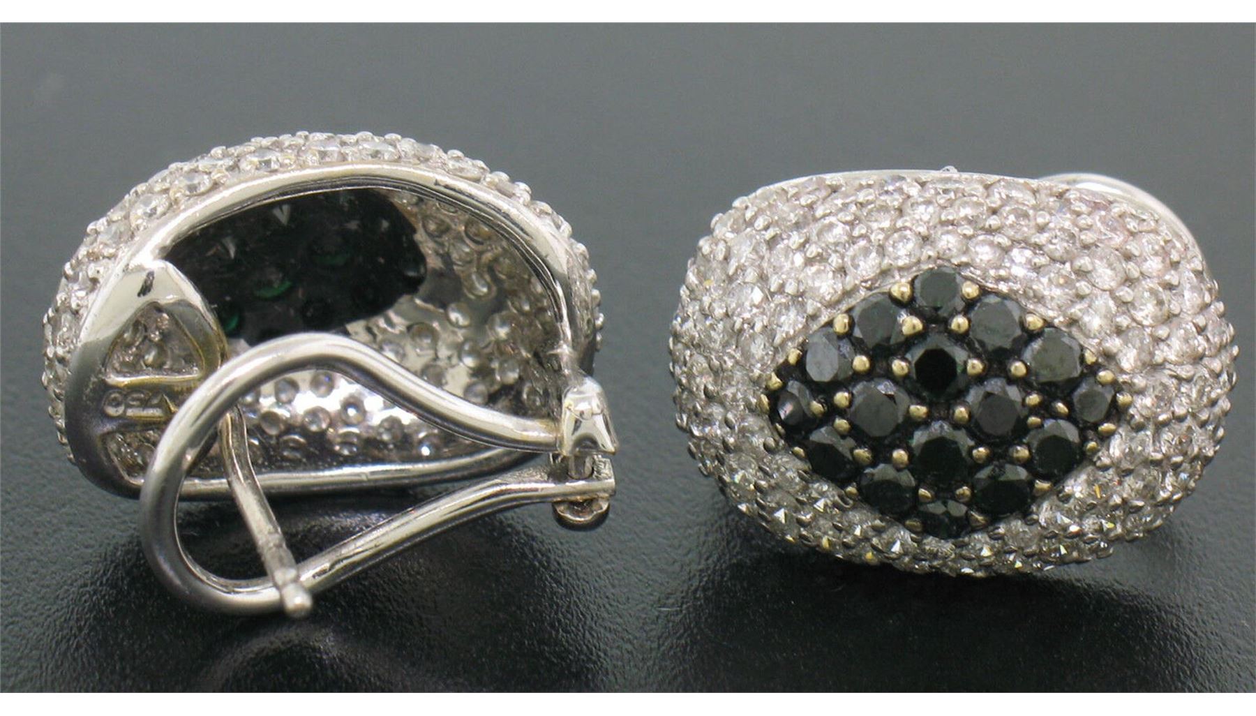 A new solid 18k white gold button earrings, with numeral of round brilliant cut natural black and white diamonds (G/H- VS2/SI1; 3.60ctw). The earrings measure approximately 18x13mm and weigh a total of 9.1 grams.