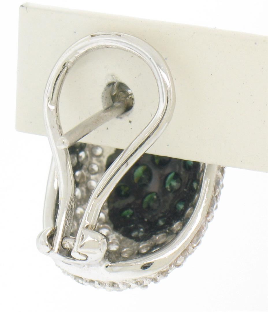 A new solid 18k white gold button earrings, with numeral of round brilliant cut natural black and white diamonds (G/H- VS2/SI1; 3.60ctw). The earrings measure approximately 18x13mm and weigh a total of 9.1 grams.