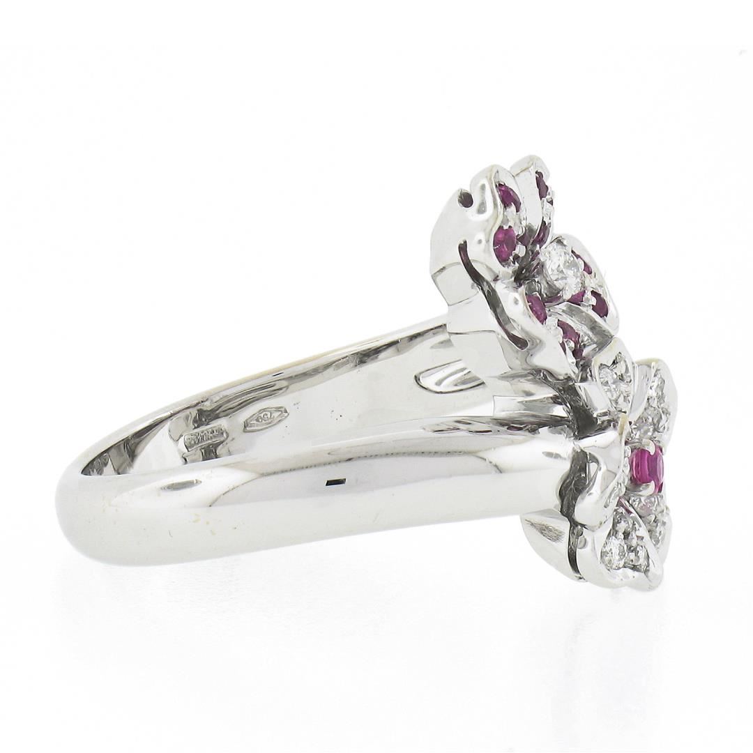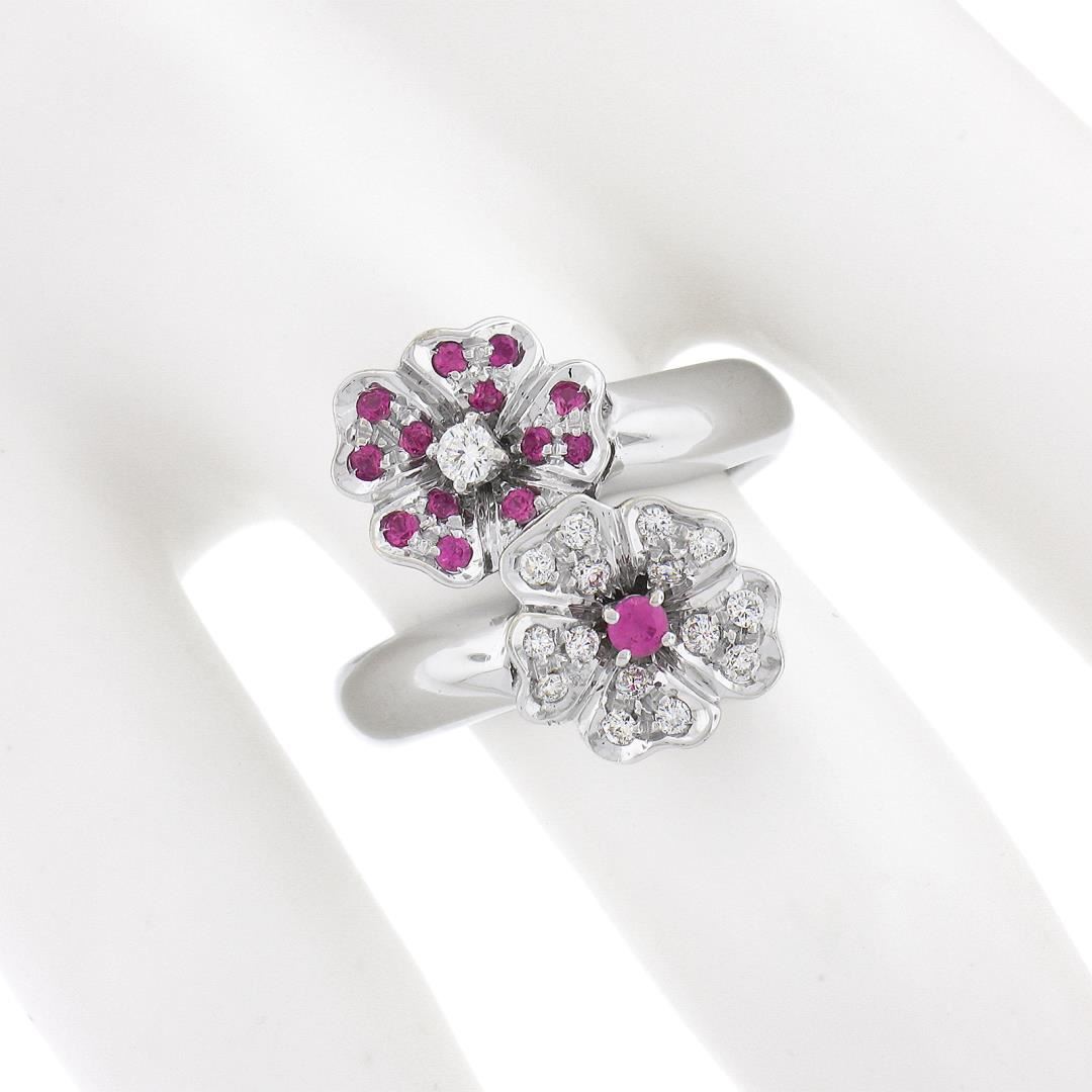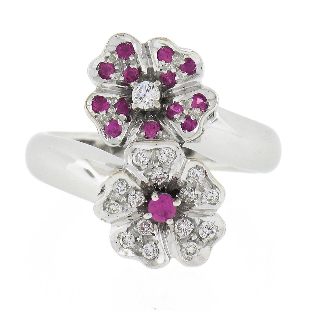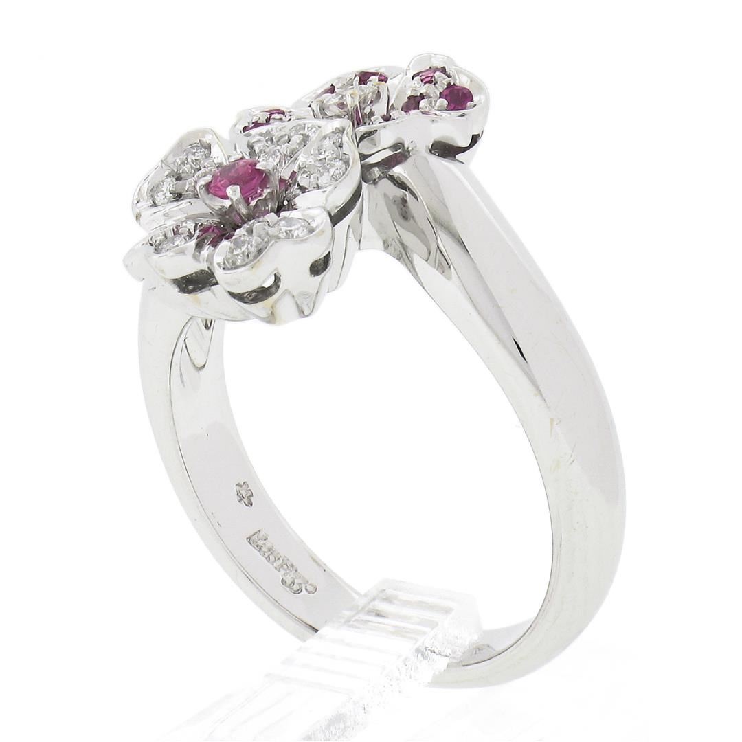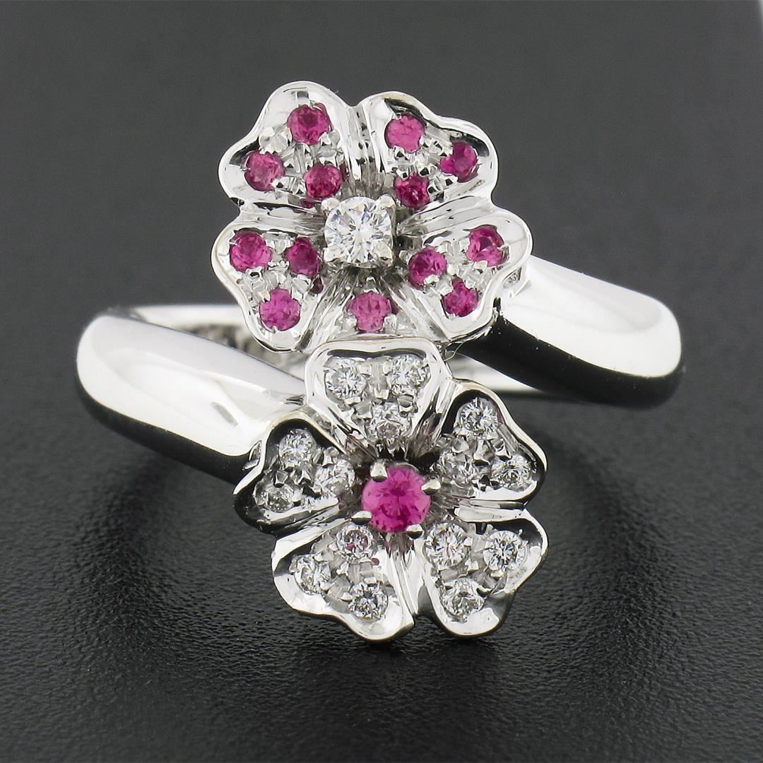 18k White Gold 0.45 ctw Round Pink Sapphire & Diamond Bypass Flower Cocktail Rin