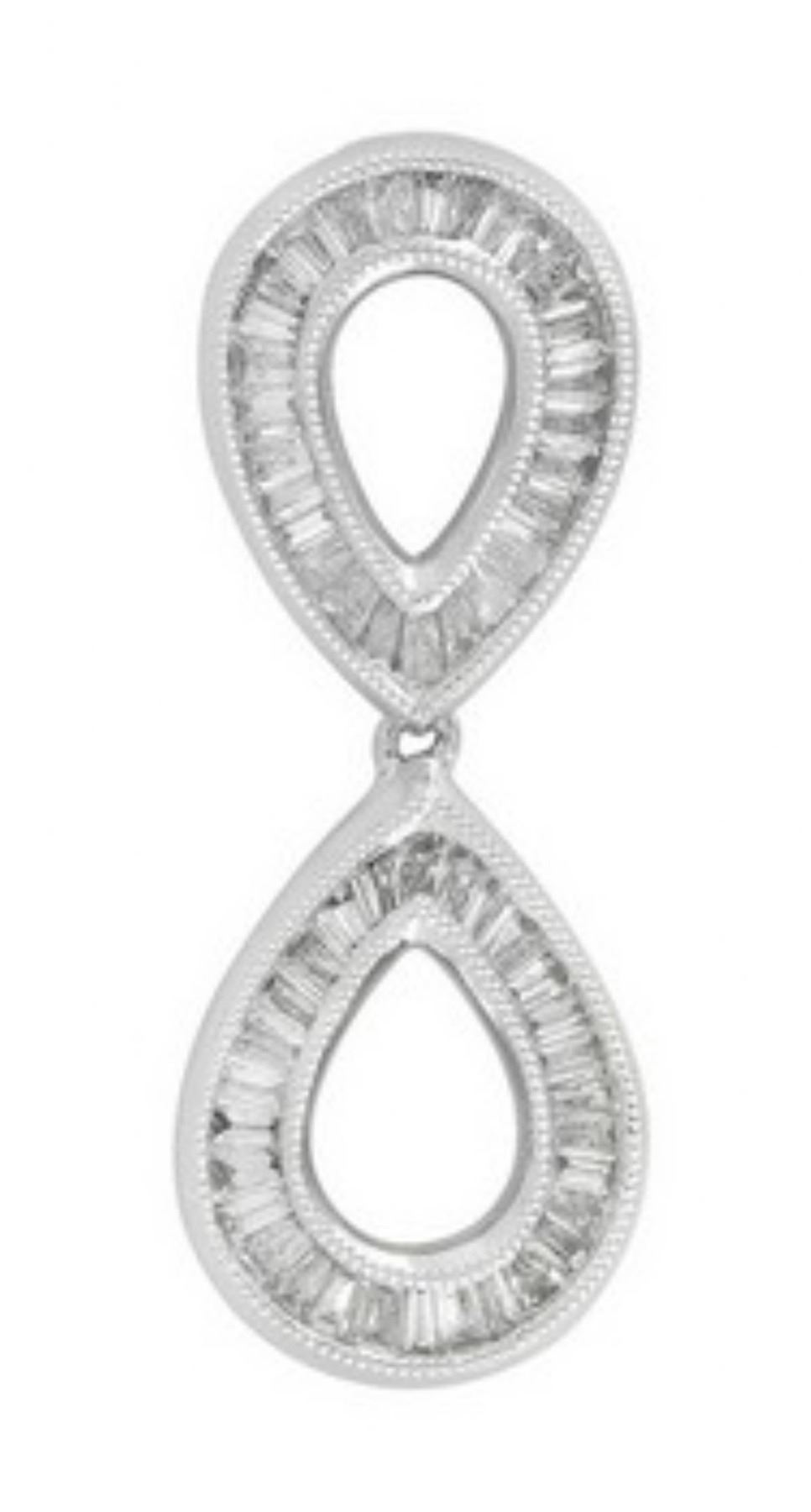 One 18k White Gold 0.56CTW Diamond Pendant, (SI3 /H-I) - Product Specification: Stone: Diamond Stone 3 Custom: Women Stone 4 Custom: SI3 / H-I Stone Clarity: SI3 Stone Color: H-I Stone Color to: I Stone Count: 55 Stone type: Baguette Stone Weight: 0.56 Weight: 1 Width: 24.0mm